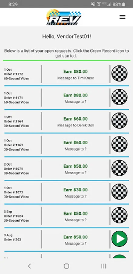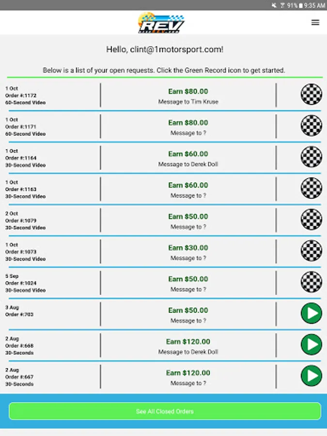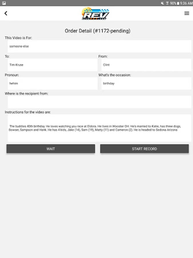 The REV talent app allows users to review, manage and record their personalized videos requests from fans.