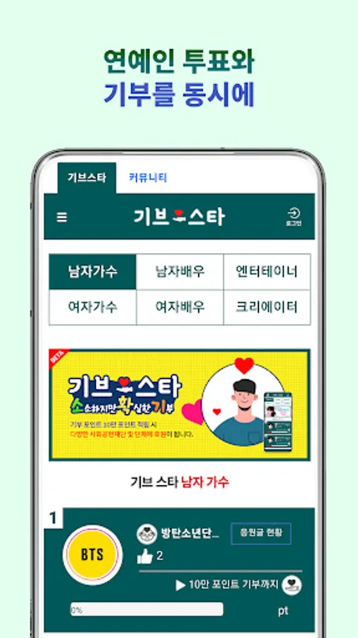 The accumulated donation points are donated to various social contribution organizations in the name of the star when 100,000 points are accumulated.