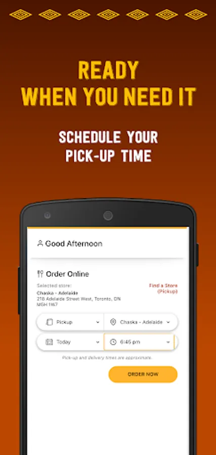 View menu and order your favourites right through the app. Order now for friends and coworkers. Schedule your order for exactly when you want it.