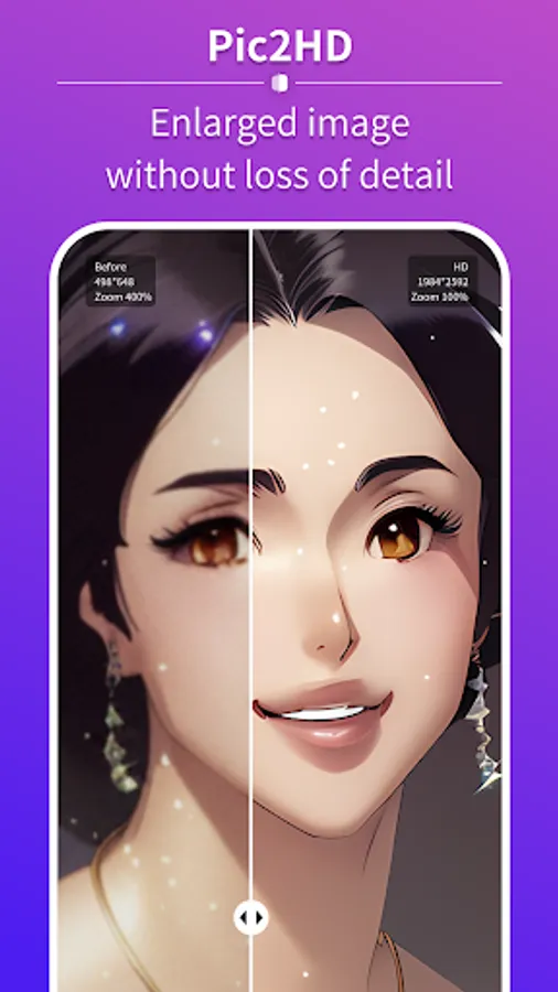 This is a very simple and easy-to-use software. All you need to do is select a photo from your camera roll and submit. It only takes a few seconds, and you will get a photo with automatic quality enhancement, and you will get a bigger and clearer photo.