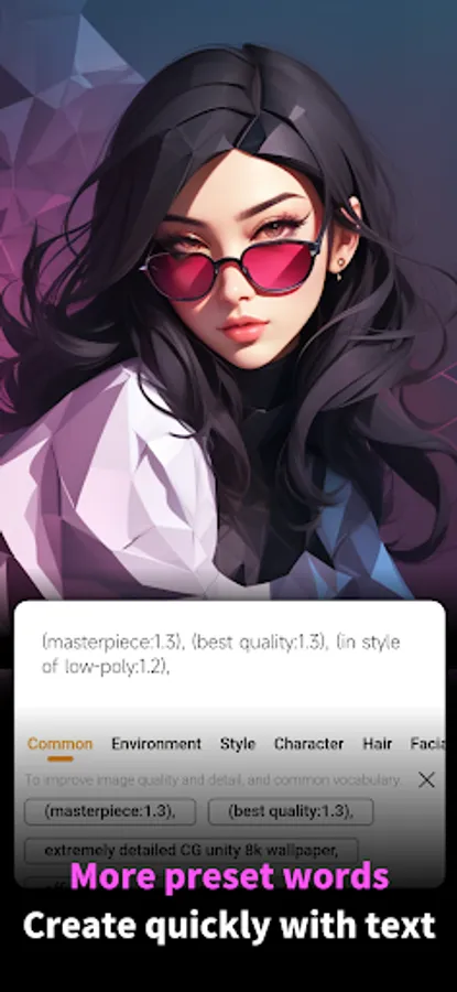 You can also use AiPic's AI technology as a creative tool by inputting txt2img, generating photos, social network avatars, character settings based on text descriptions and art styles. You can use the preset prompts to improve the efficiency of your input text, which will ensure more amazing creative results.
