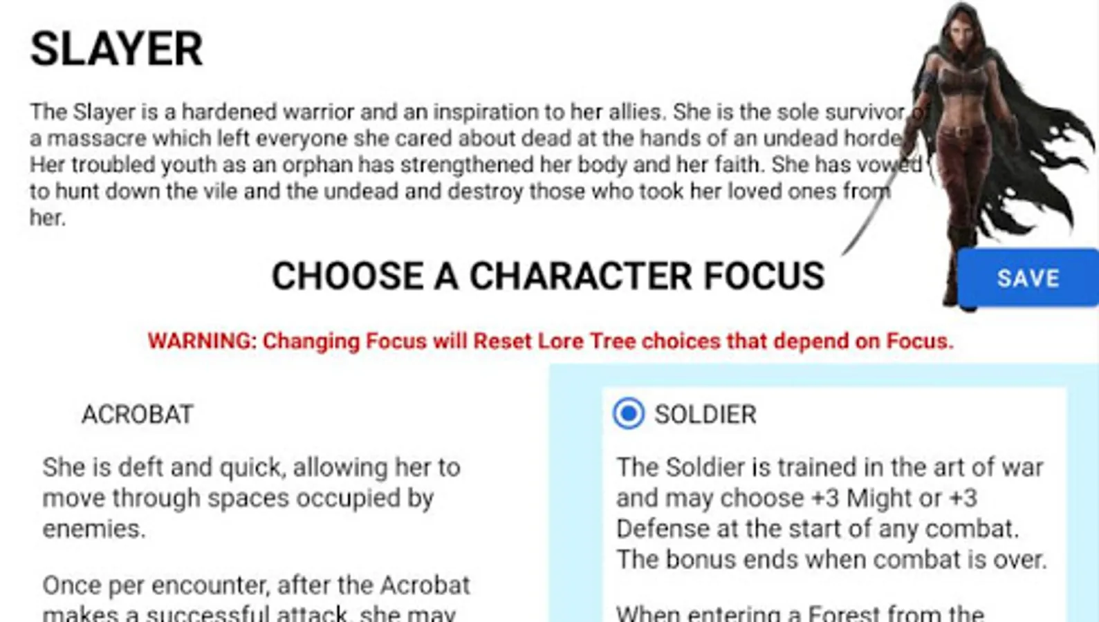 -- Track you Lore choices by selecting the options from drop-down boxes.