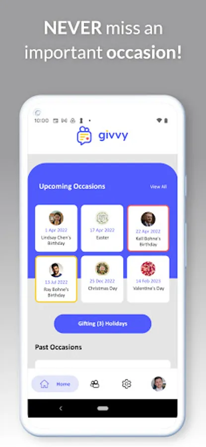 · Givvy keeps track of occasions for you.