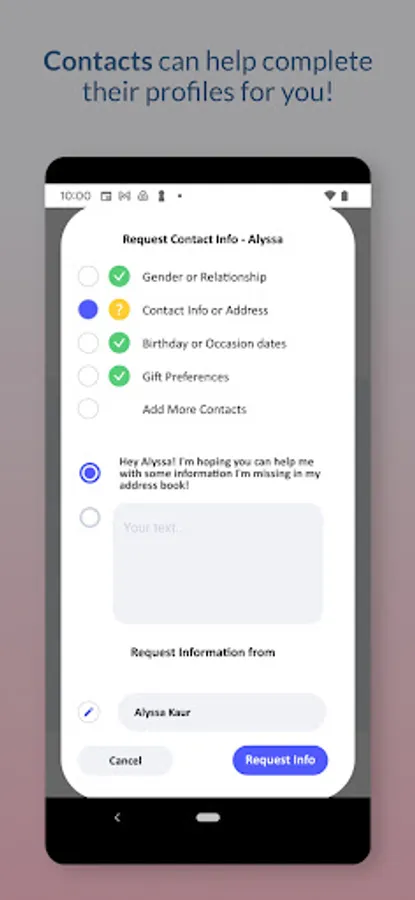 · Contacts can help you complete their profile.