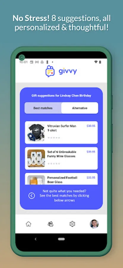 Givvy recommends a handful of unique, thoughtful, and personalized gifts to help you let the people you care about know they’re on your mind. Be proud of the gifts you get people without having to spend more than you want or stress over seemingly endless shopping. With Givvy, you can complete the entire gifting process in as little as two minutes and know you got a great gift your recipient will really appreciate. You may even learn something new about your closest friends and family members through their gift preferences!