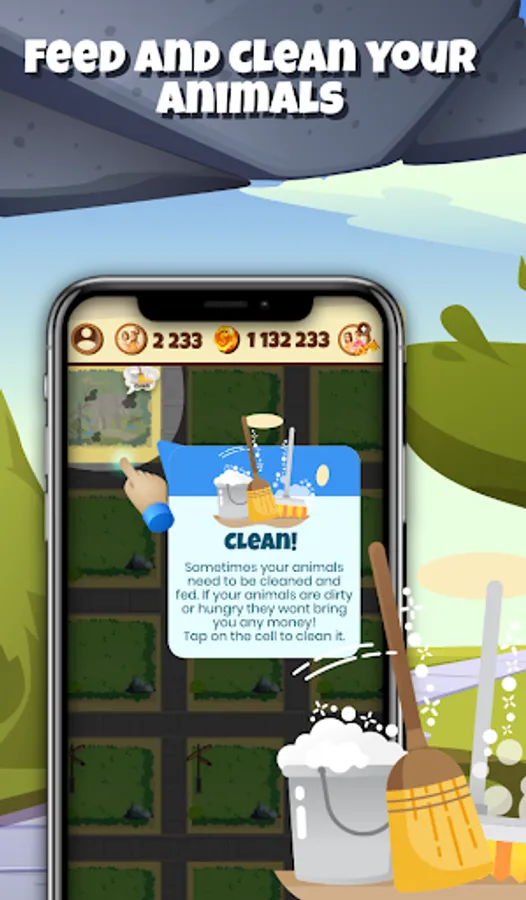 Level up in this animal simulation game to unlock new features, buildings, stores and animals. Make sure your cells are clean and fed so that you can level up easily.