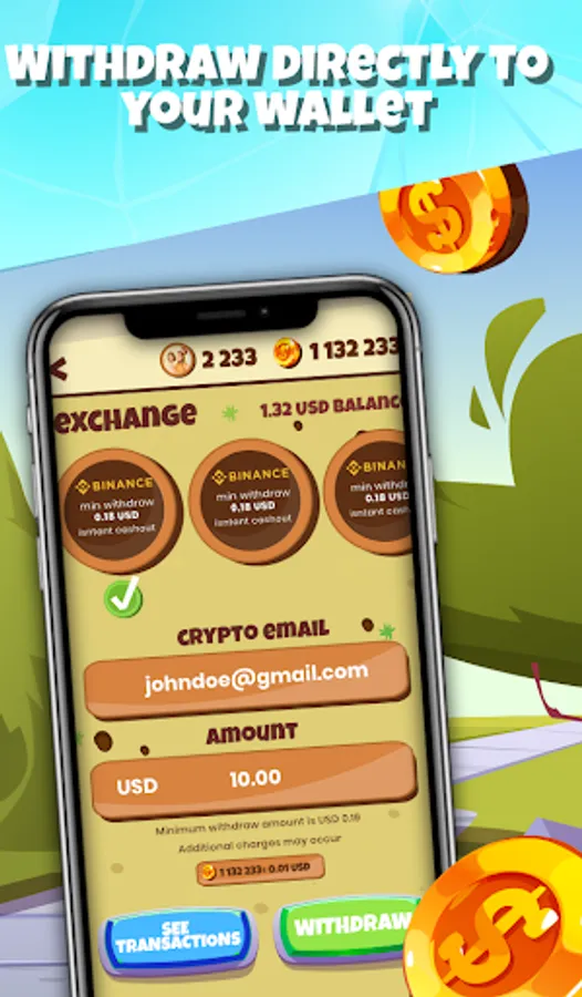 Withdraw directly to PayPal, Coinbase, Binance, Amazon or another virtual wallet.