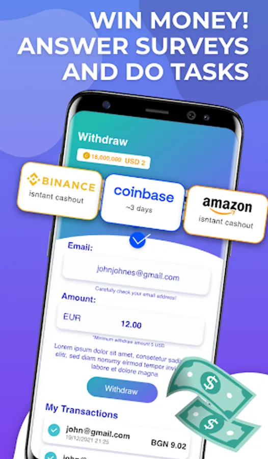 Take surveys, complete tasks and cash out through the world- famous sites. Simple and Easy options for the withdrawal of your money: