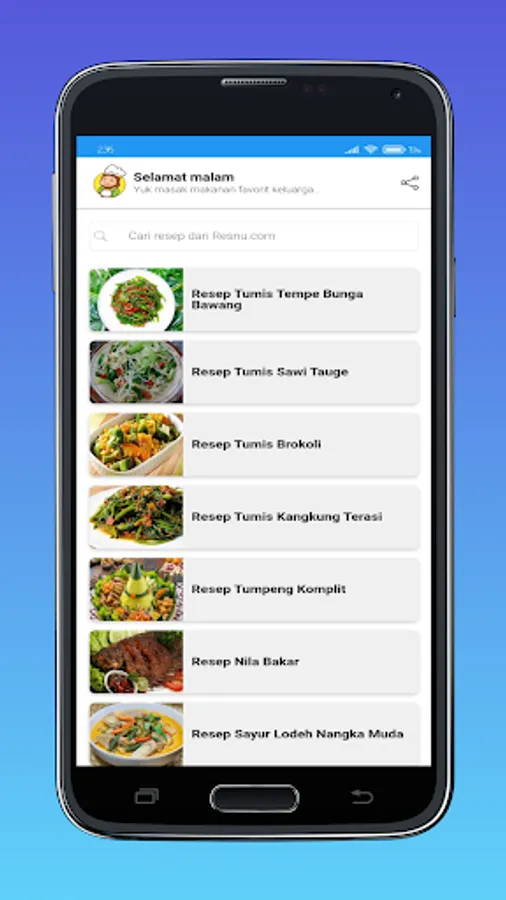 Indonesian Recipes is an application that provides more than 100 Indonesian recipes that can be easily accessed on your cellphone.