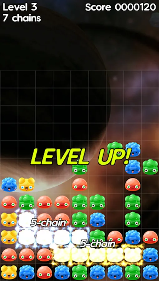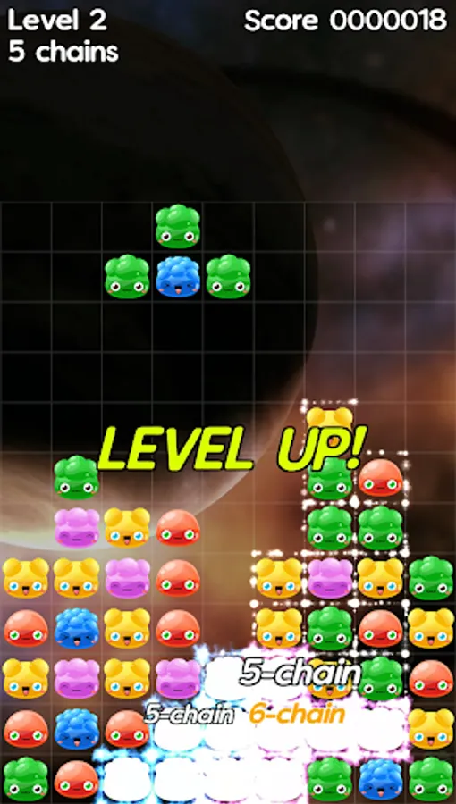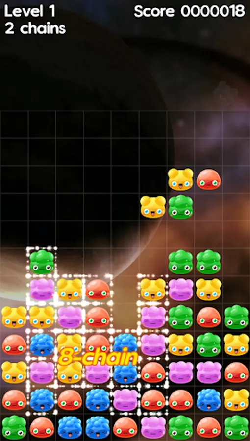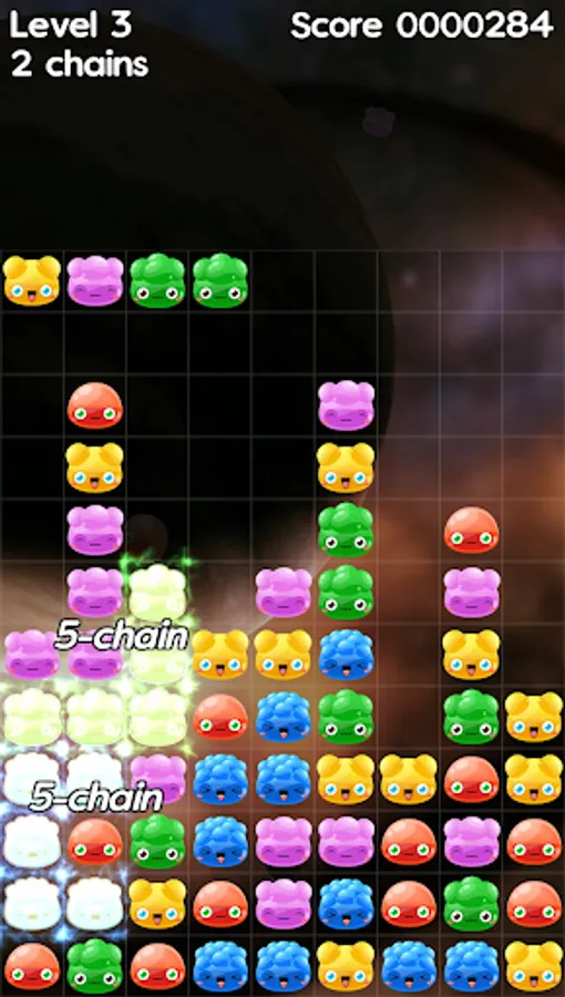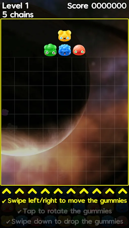 Move and rotate the falling gummies on top, make chains of colors at the bottom! Do as many combos as you can to multiply the points!