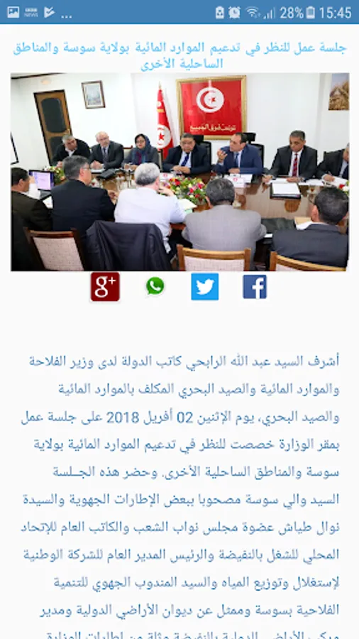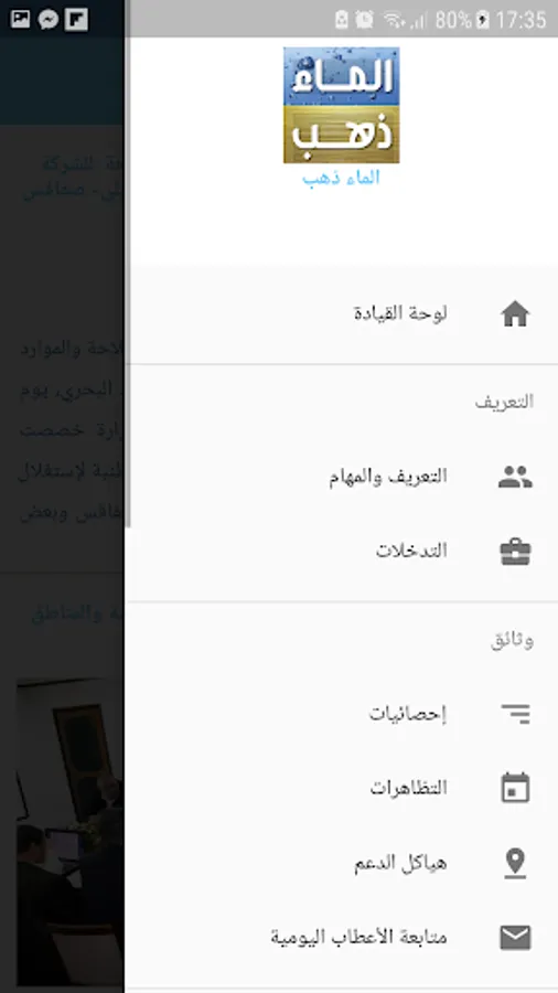 "Water went" Emperical carry on mobile phone, developed by the Ministry of Agriculture, Water Resources and Fisheries at the disposal of citizens to enable them to daily escort of developments in the water system Btonc.ottalaa these Applied users on the most important national events dealing with water in Tonc.adavh to follow-up damage issues on a daily basis and Hanah which Ttra the distribution Almiah.omn features of this network enable Applied Mahmiha to see the rationalization Alme.otkdm Emperical "water consumption of good practices went" on a daily basis for the latest statistics stock Tunisian camel dams.