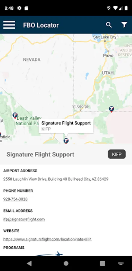 The Titan Aviation Fuels mobile app allows members to manage their Titan Rewards (formerly AeroClass) accounts just like before, along with an easy-to-use Titan FBO Locator. This allows members to quickly and easily see which locations participate in the Titan Rewards program. This also allows members to get FBO contact information with just a few taps.