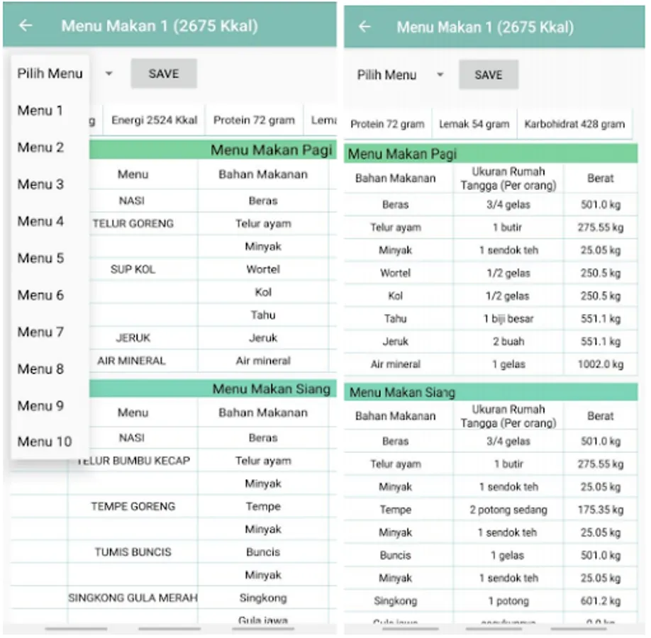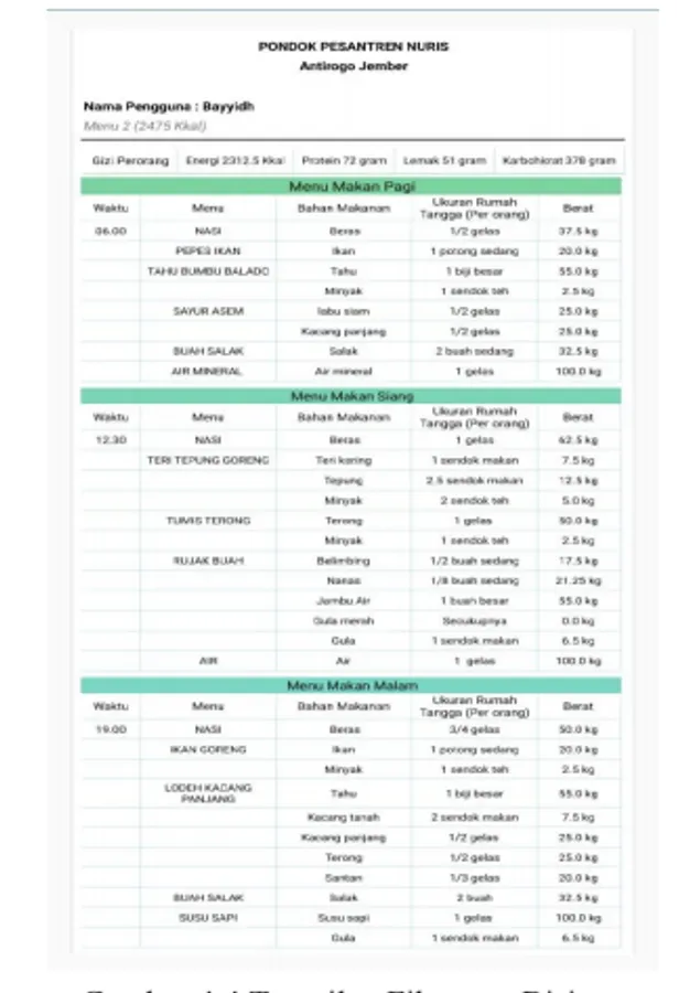 This application can be applied to meet the nutritional needs of students, provide information that is easily understood and needed by users in terms of planning food menus in Islamic boarding schools so as to get information on some food menus and the amount that has also been adjusted.