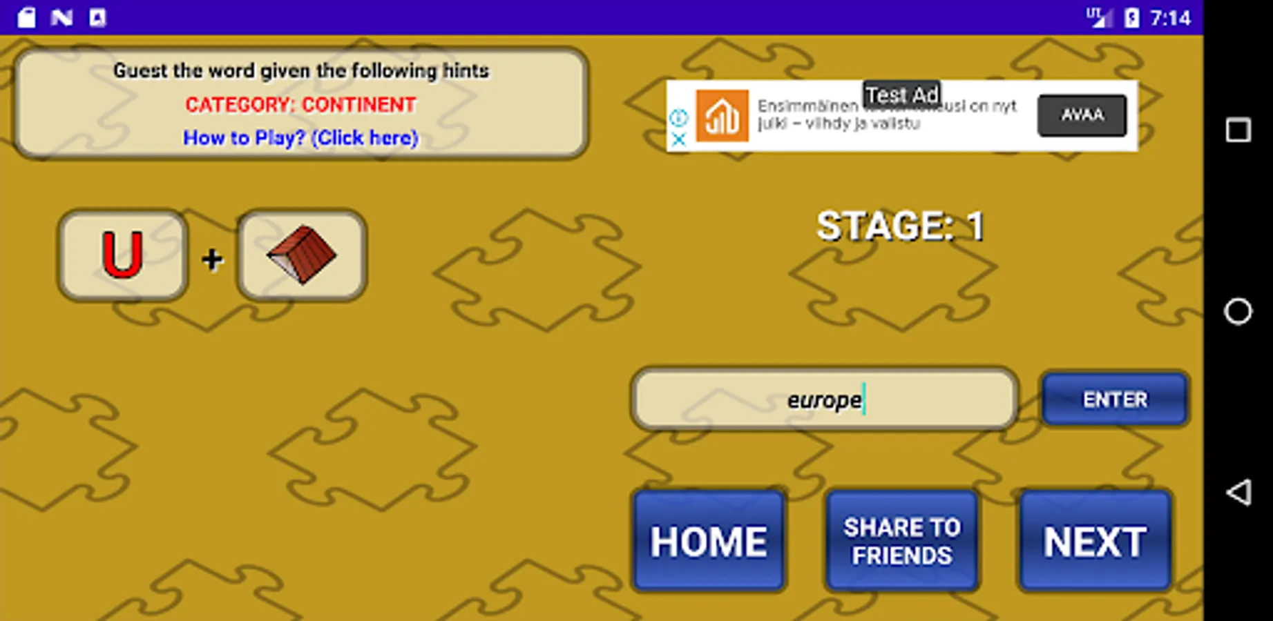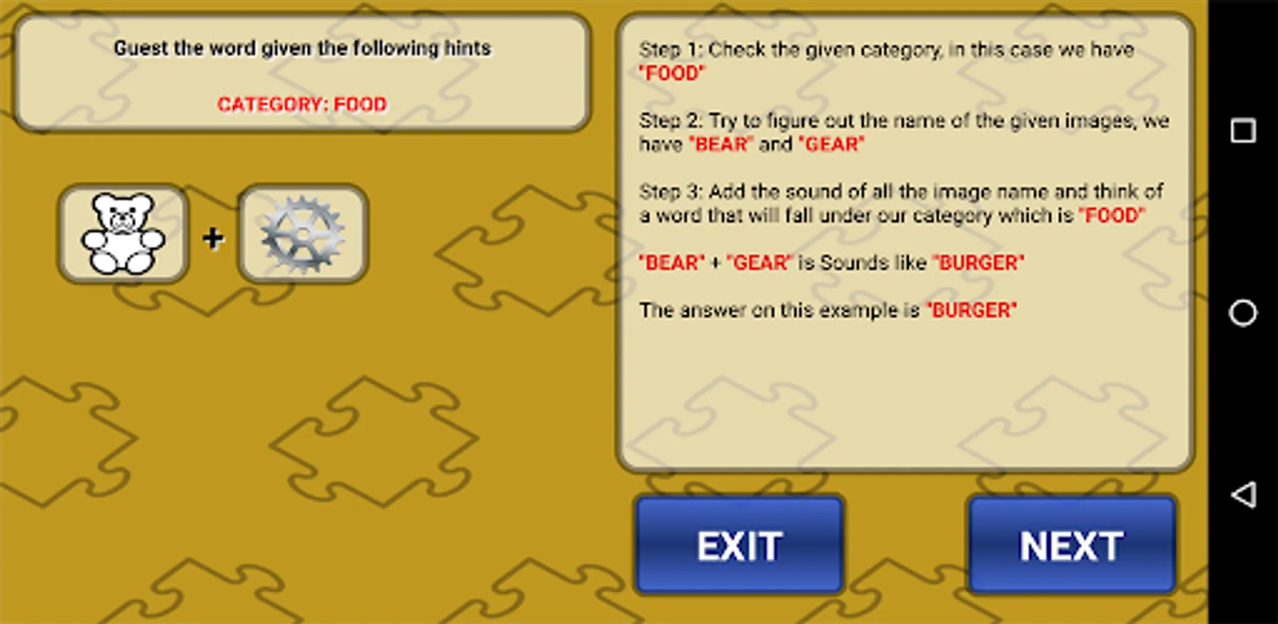 This App Contains puzzle, you will guest the word by adding the sounds of all the the image that you will see