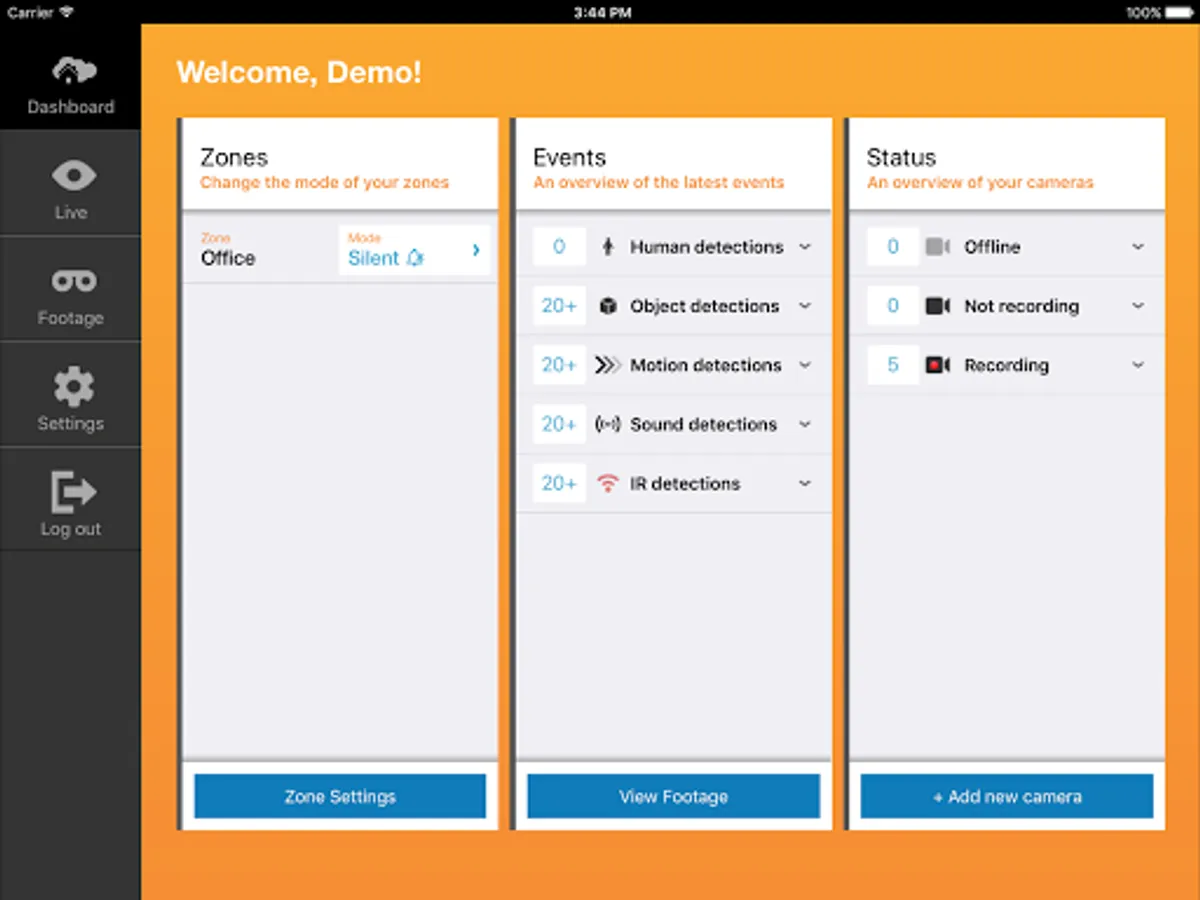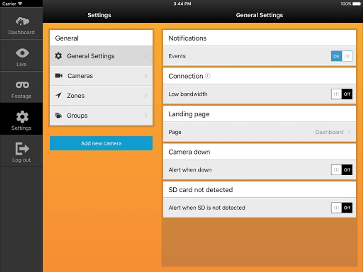 * Receive push notifications when your camera detects objects, motion, sound or heat