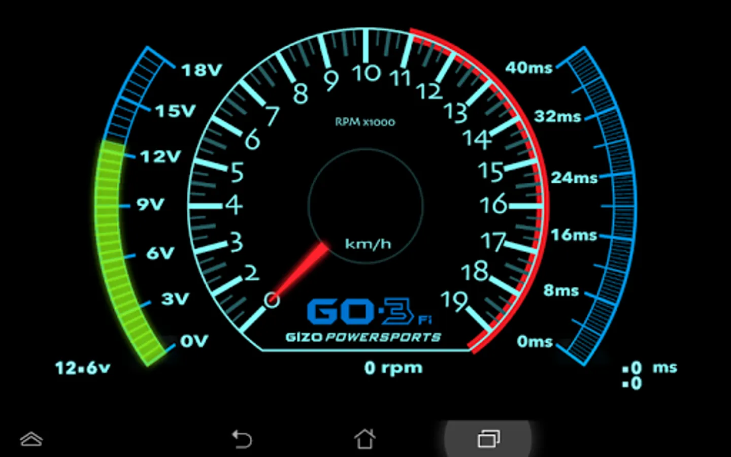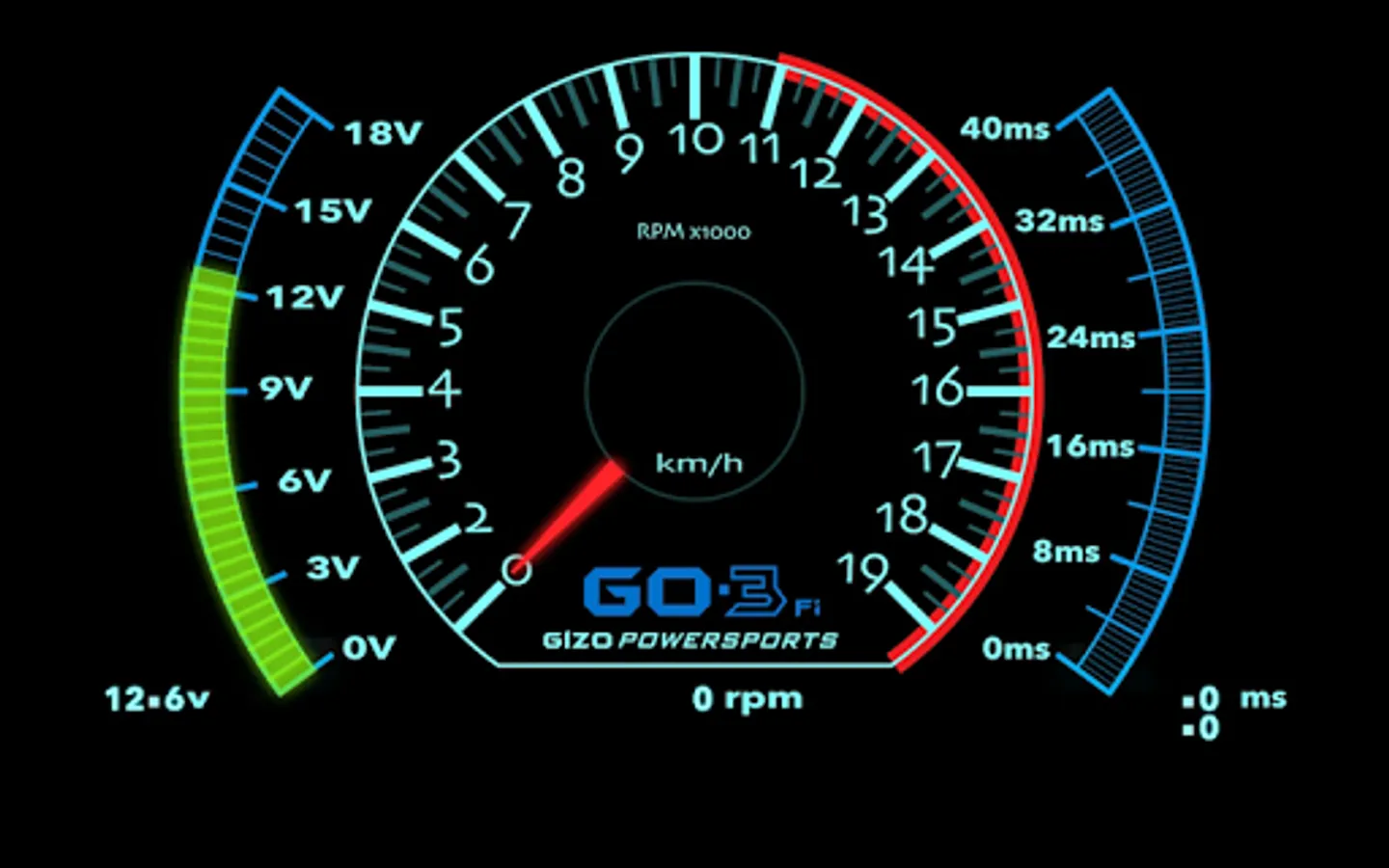 1. 優美的儀錶,透過GO3,可以顯示機車的噴油脈寬,轉速,以及電壓,如果您的手機有支援GPS,則還可以顯示速度。