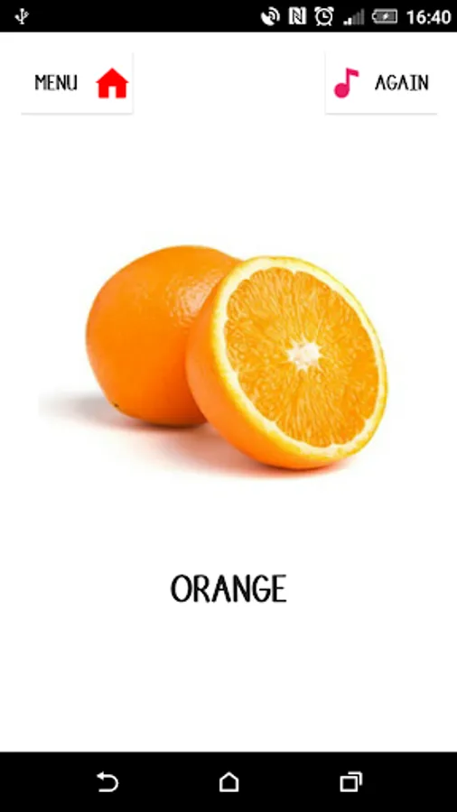 Learning: A random fruit's is displayed with it's picture and pronunciation