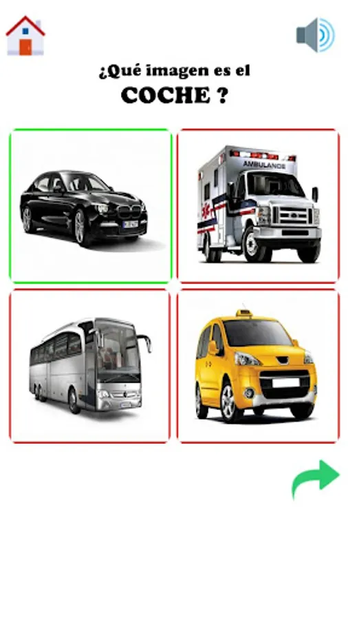 Game 2: One random word from the selected category is displayed and you are asked to select the correct picture from the options.