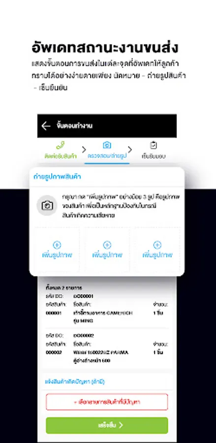 - Taking a pickup & delivery photo as evidences.