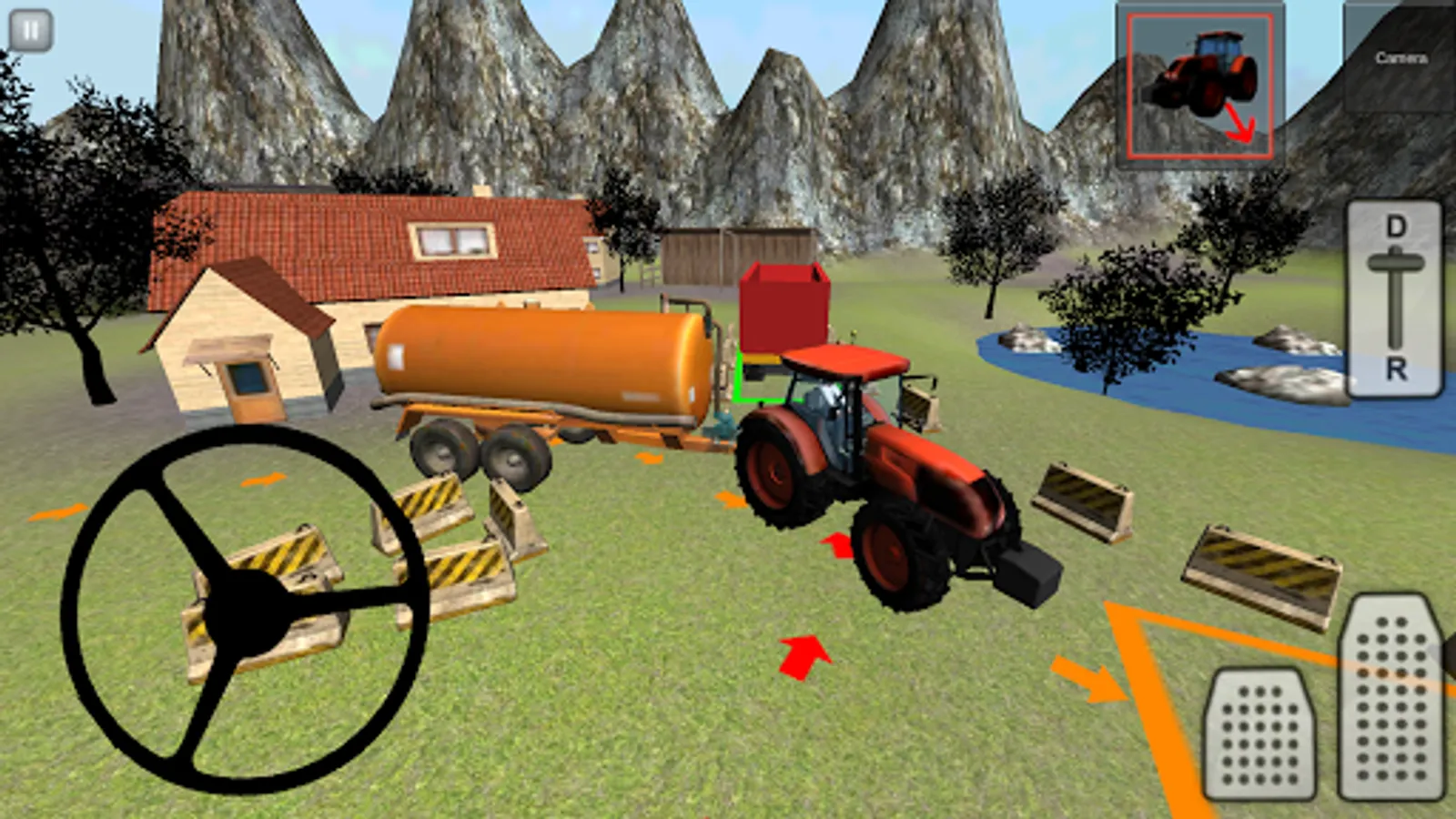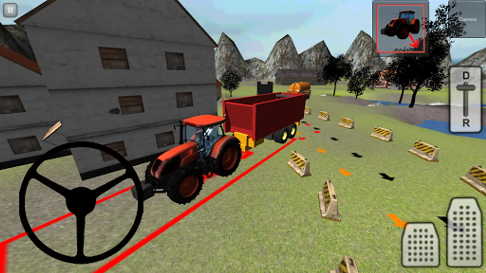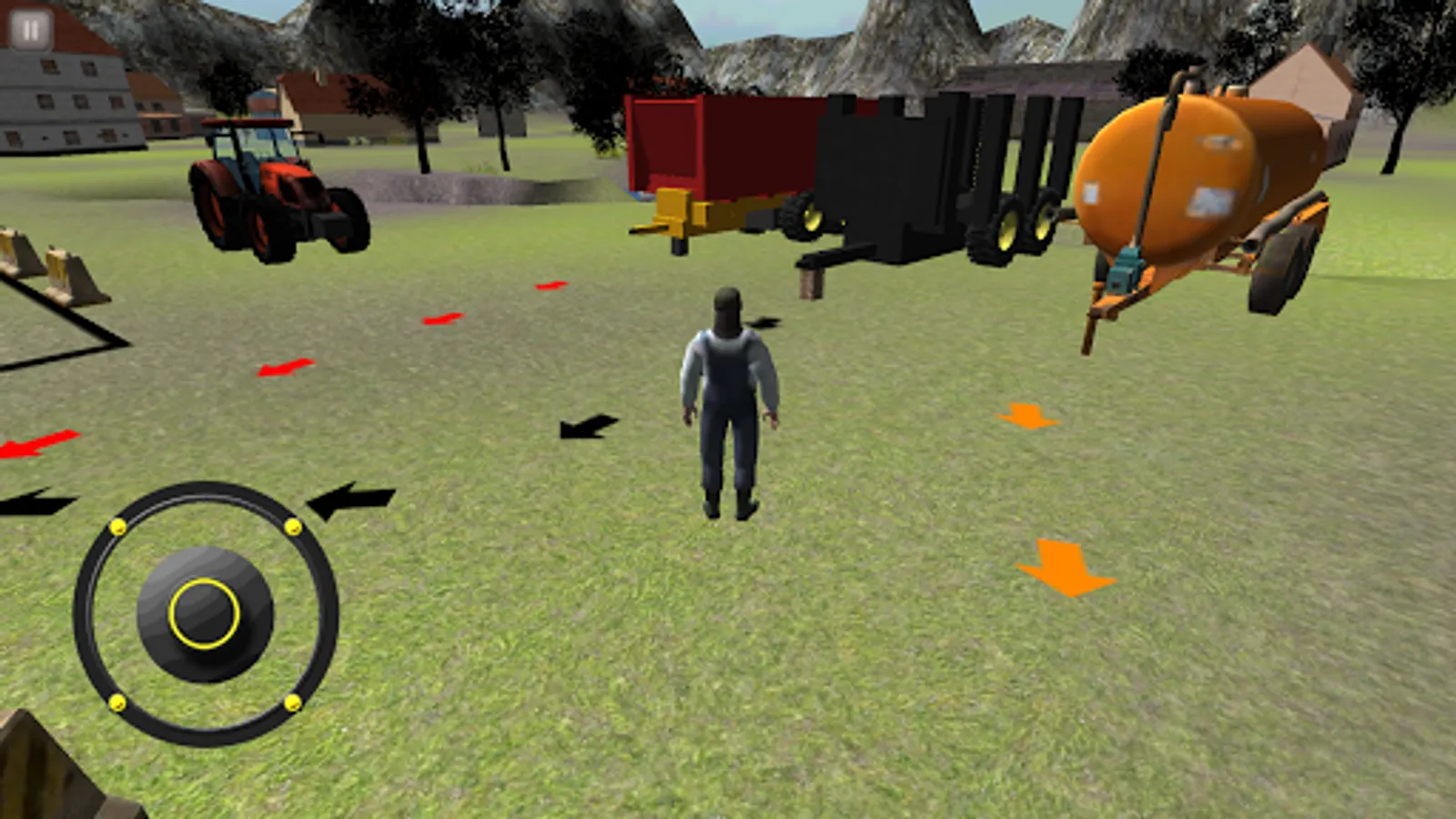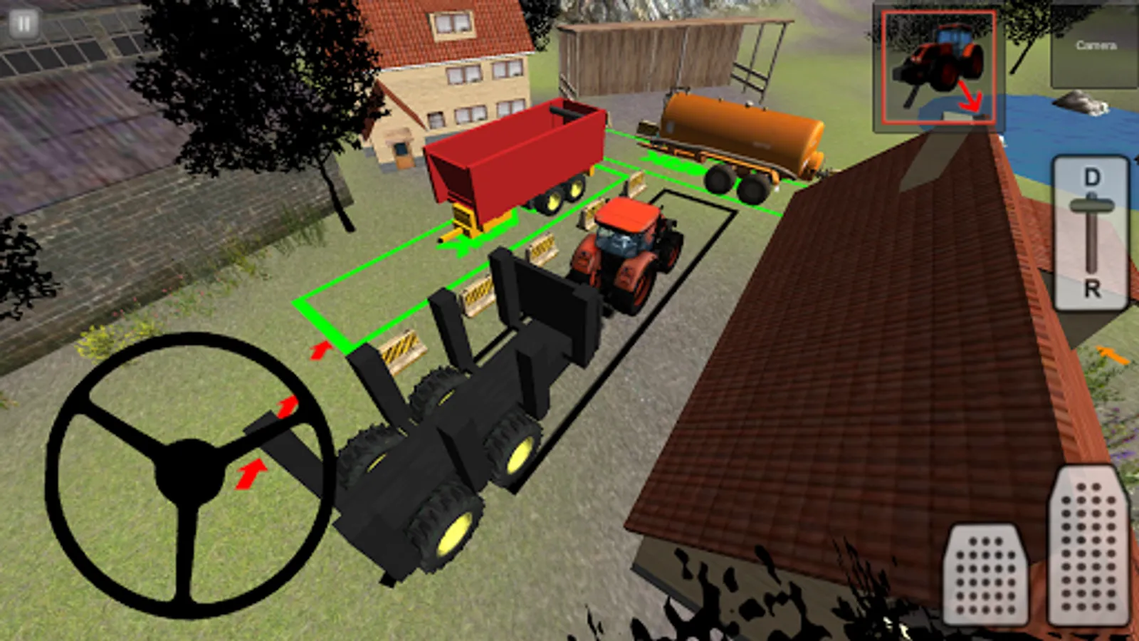 In this Tractor Parking version of Farming 3D you'll learn how to drive with three different trailers which are used on a farm. With the three different trailers (silage wagon, liquid manure tank, wood trailer) you have to maneuver in tiny parking spaces, just like on a real farm. First you have to walk to the tractor and enter it. After that you can pick the trailer you want to start with first. Every trailer have their own arrows, with the silage wagon you have to follow the red arrows, with the liquid manure tank you have to follow the orange arrows, and finally, with the wood trailer you have to follow the black arrows. The arrows will lead you to the correct parking space, when you have successfully parked a trailer, you can start with the next trailer, until you have parked all trailers.