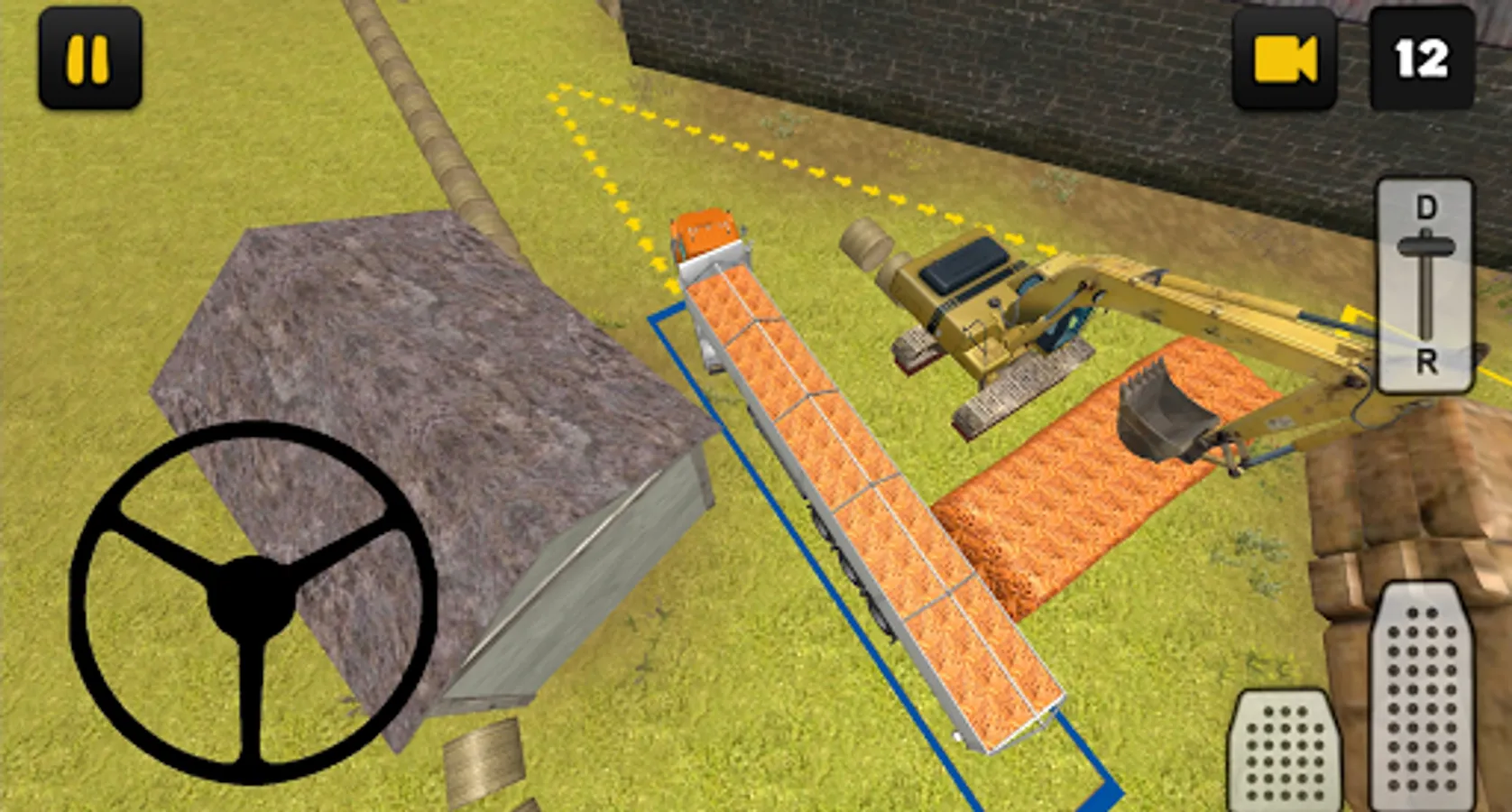 As a truck driver of a Carrot Transport Truck you are responsible for the transport of the carrots from the farm. Transporting carrots with a truck is not easy, you have a lot of weight for example. The trailer is also big and you can hit easily objects. In 15 levels you'll face realistic situations which you have to face as a truck driver, such as reverse driving into a shed. To finish a level you first have to attach the trailer, to do that follow the red arrows. After you've attached the trailer, you have to load the trailer, to do that follow the blue arrows. The trailer will load automatically. Finally, to finish the level you have to park your truck and trailer, to do that follow the yellow arrows.