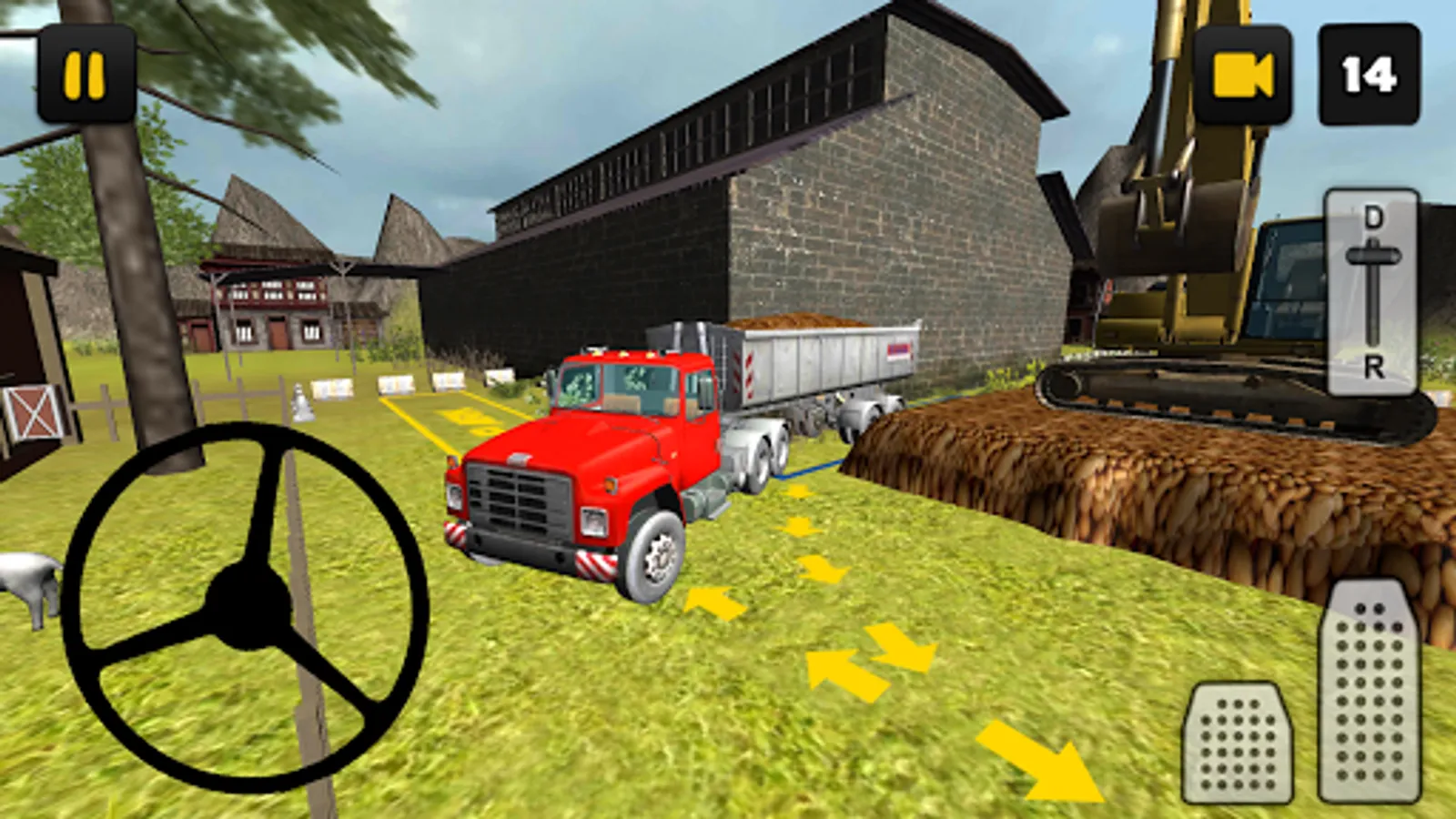 In this Potatoes edition of Farm Truck 3D you'll learn how to transport potatoes to different locations on the farm! Transporting Potatoes is not always easy, you have to drive reverse into tiny spots for example. Also you need to look out for all the objects on the farm, the sheds and walls for example. To finish a level you first have to attach the trailer, to do that follow the red arrows. After you've attached the trailer, you have to load the trailer with potatoes. To load the trailer, you have to follow the blue arrows to the loading place. The trailer will load automatically. After the trailer is loaded, you have to park your farm truck and trailer, to do that follow the yellow arrows.