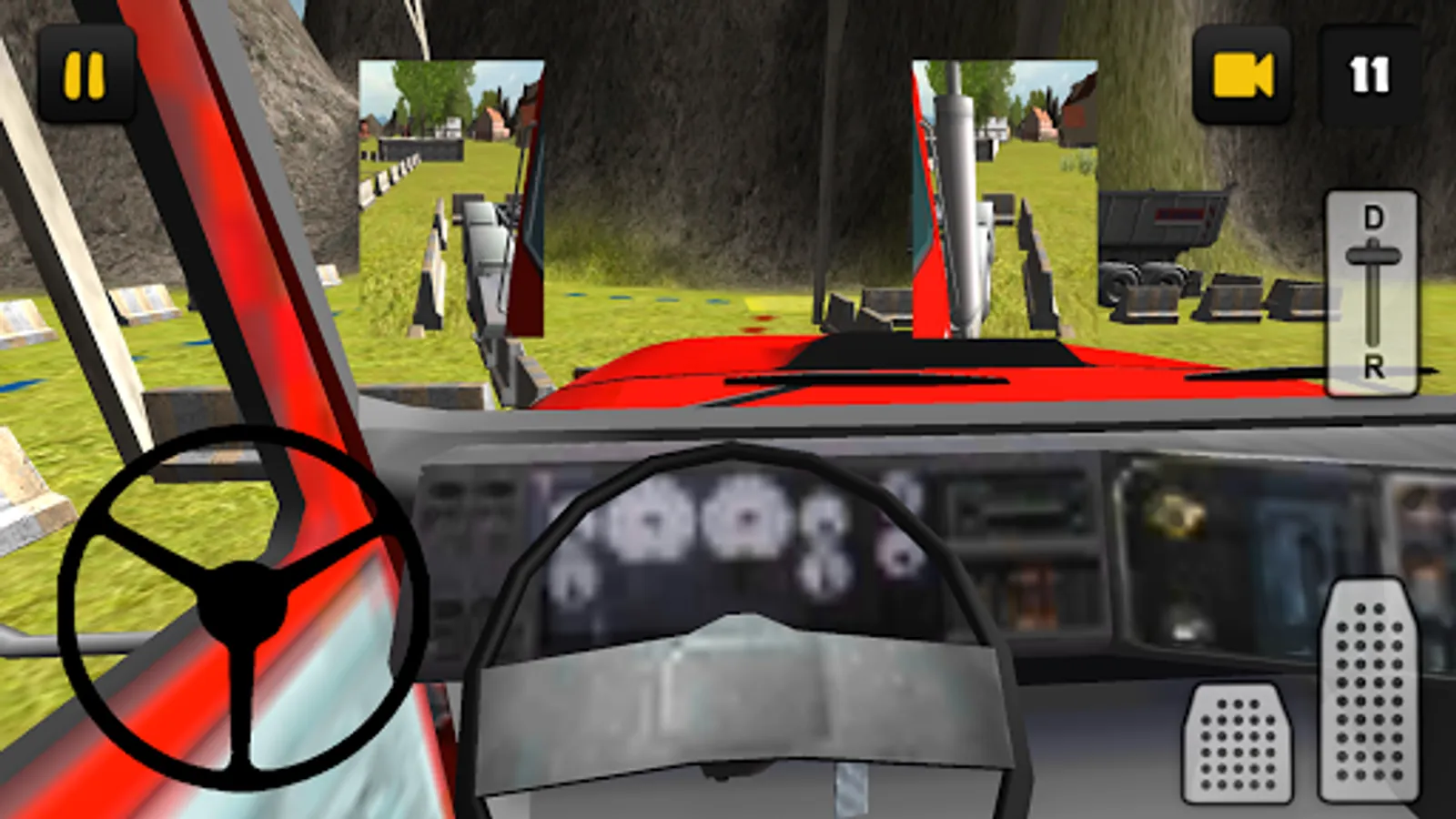 - Cab view with side mirrors
