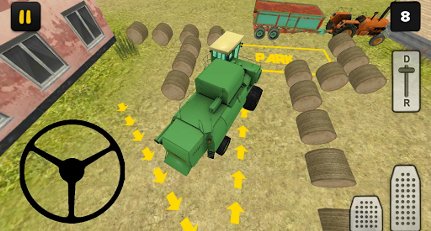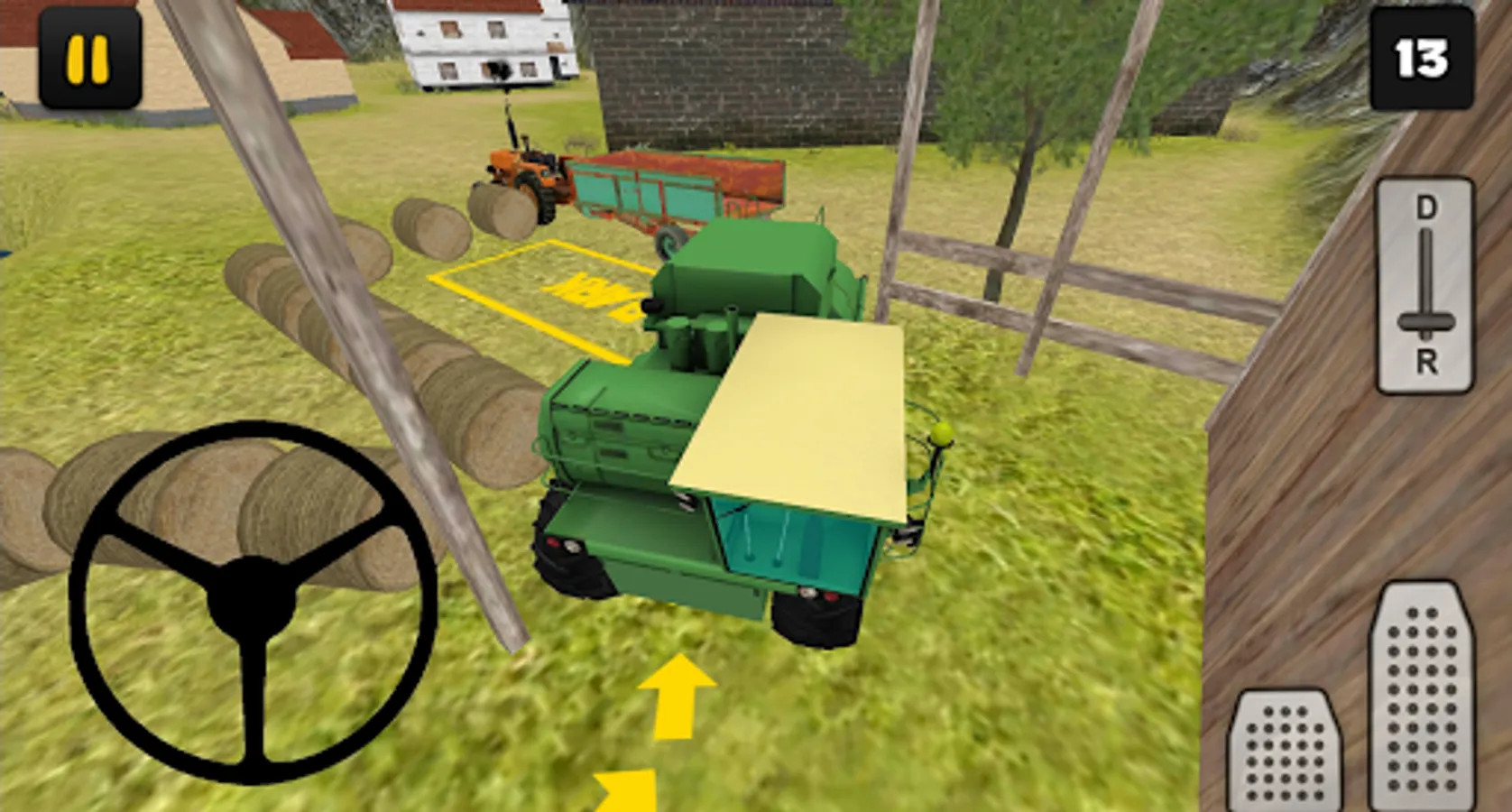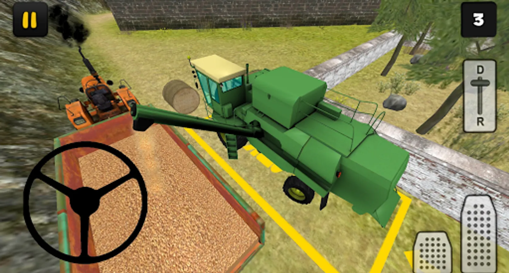 You as the driver of the harvester need to have good driving skills, in this Wheat Unloading edition of Harvester Driving 3D you'll learn how to maneuver with a harvester. Driving with a harvester is difficult because it steers with the rear wheels. In 15 levels you'll face challenging situations where you have to park the harvester near the tractor and need to unload the wheat. To finish a level you have to follow the yellow arrows, the harvester will unload automatically.