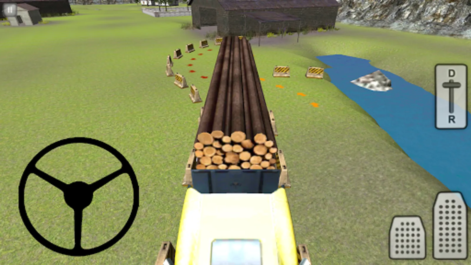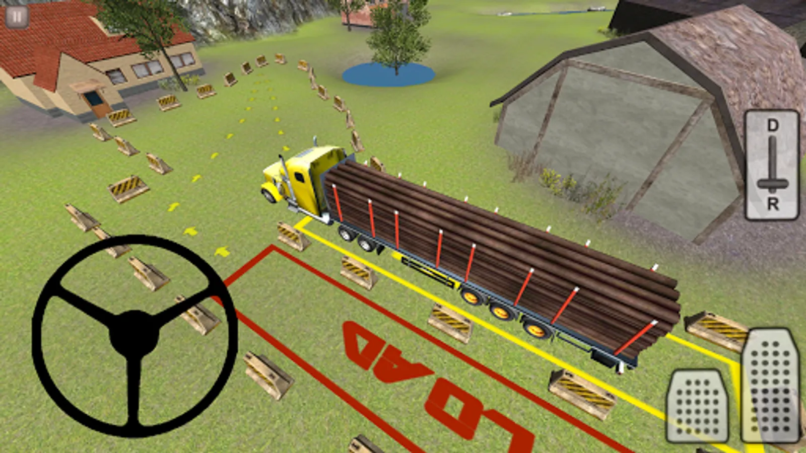In this Log Truck Simulator you'll learn how to drive with a log truck. When you work in the forest you have to drive carefully with your log truck, because there are lots of things that can damage your truck. In this Log Truck Simulator you'll experience 15 different situations where you have to maneuver your truck around obstacles. First you have to attach the trailer, for that you have to follow the orange arrows, after the trailer is attached you have to follow the red arrows, they will lead you to the loading place, after the trailer is loaded you have to drive into the parking spot, for that you have to follow the yellow arrows.
