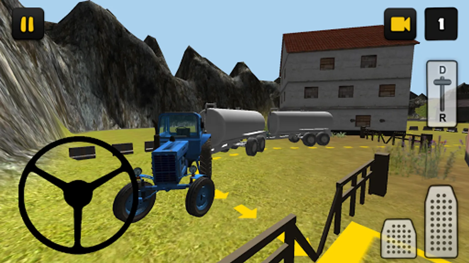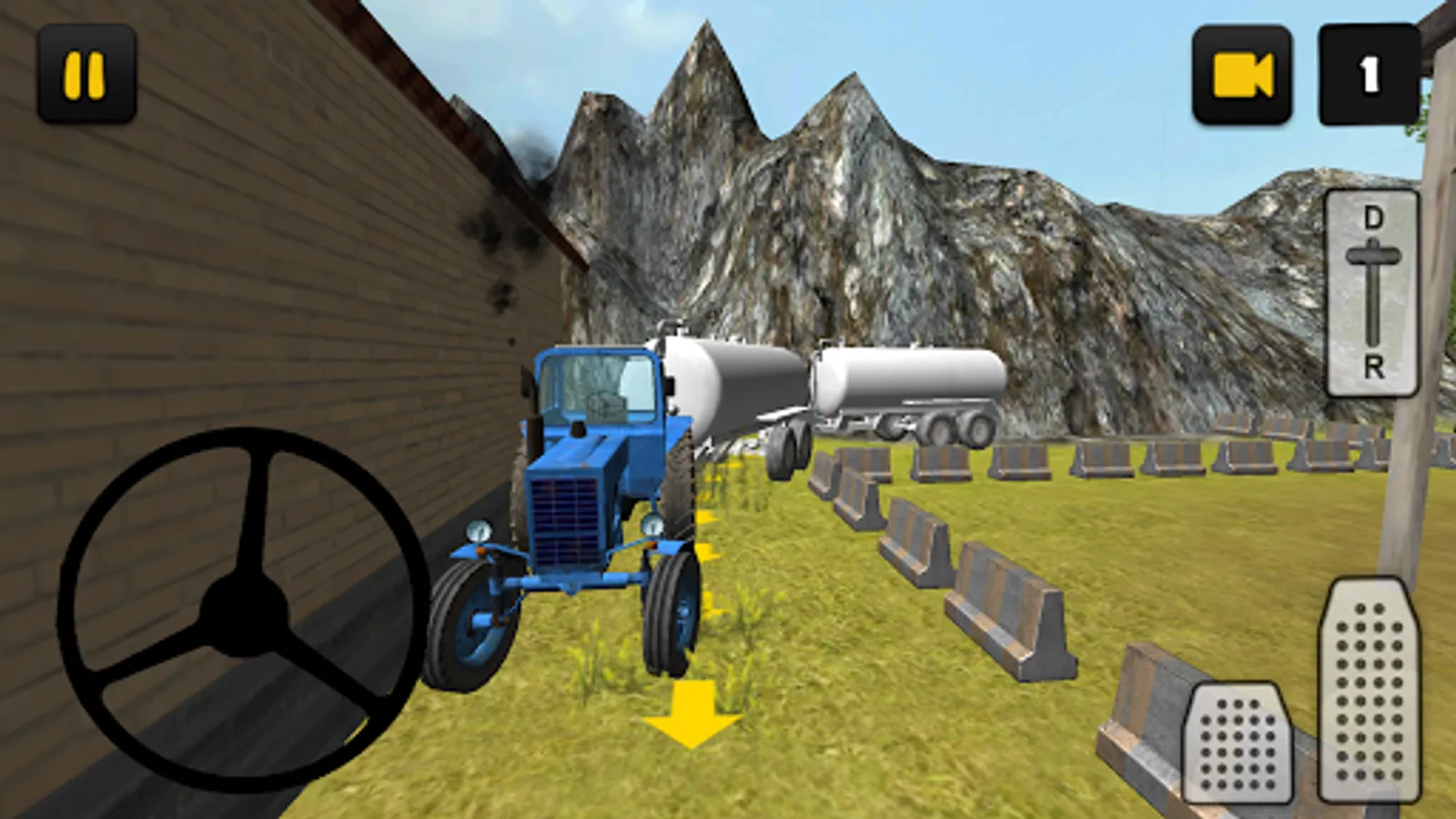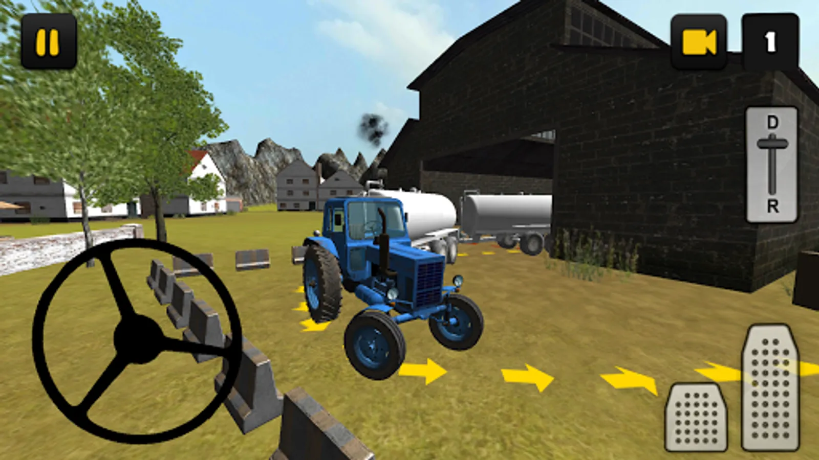 Transporting milk is a important task on the farm. As a farmer you have to transport the milk to different locations. It's important to transport as much milk as possible, so you have to drive with two trailers. Driving with a tractor and two trailers is not easy. You need to be aware of the big turning radius for example, also the reverse driving is very hard with two trailers. In 15 levels of Tractor Milk Transporter Extreme you'll learn how to transport milk with a tractor and two trailers. To finish a level you first have to attach the trailer, to do that follow the red arrows. After you've attached the trailer, you have to park your tractor and trailer, to do that follow the yellow arrows.