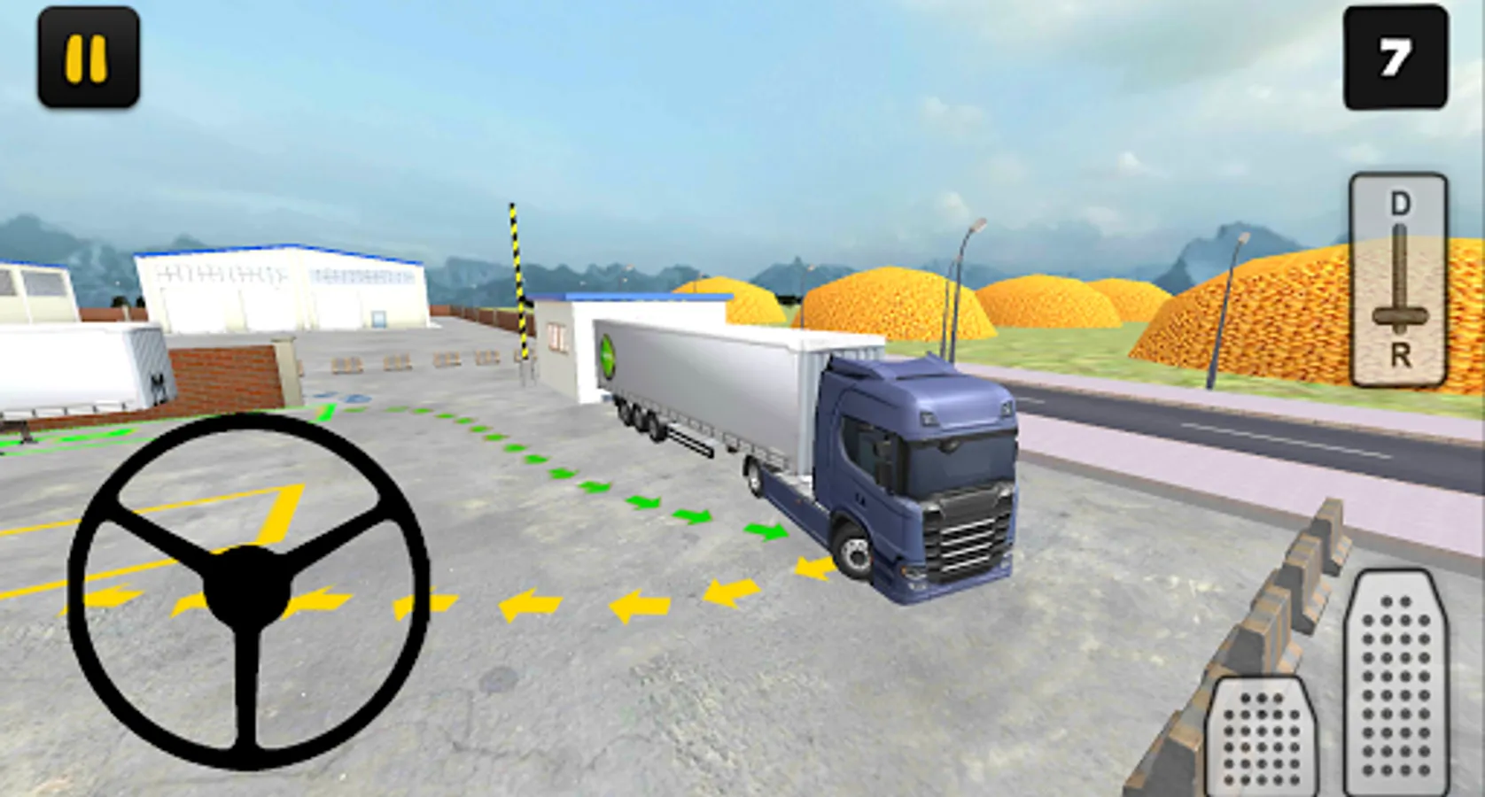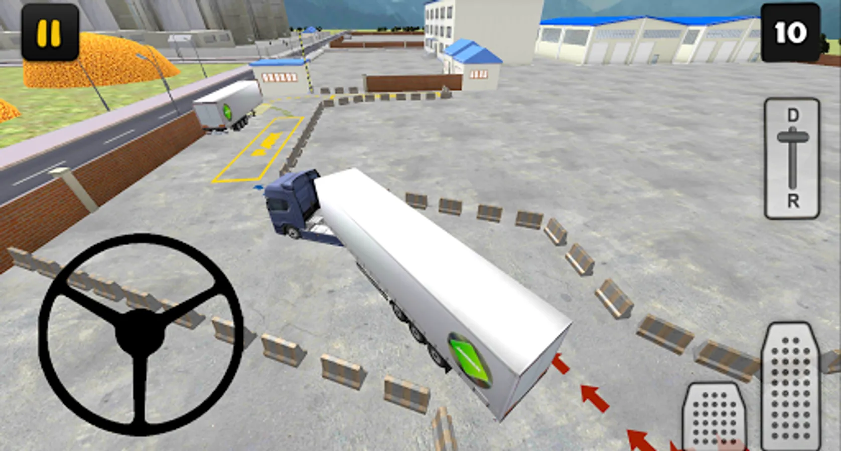 In this Factory edition of Truck Parking Simulator 3D you'll learn how to drive and maneuver with a three axle trailer. As a truck driver you have to move the trailers around on the factory terrain, driving with a truck and trailer is not always easy. You have to know your truck and trailer, otherwise you could hit an object. In 15 levels of this Factory edition of Truck Parking Simulator 3D you'll face realistic situations, such as reversing into a small spot. To finish a level you first have to attach the first trailer, to do that follow the red arrows. After you've attached the first trailer, you have to park the first trailer, to do that follow the blue arrows. The trailer will park automatically. To attach the second trailer follow the green arrows, to park the second trailer, follow the yellow arrows.