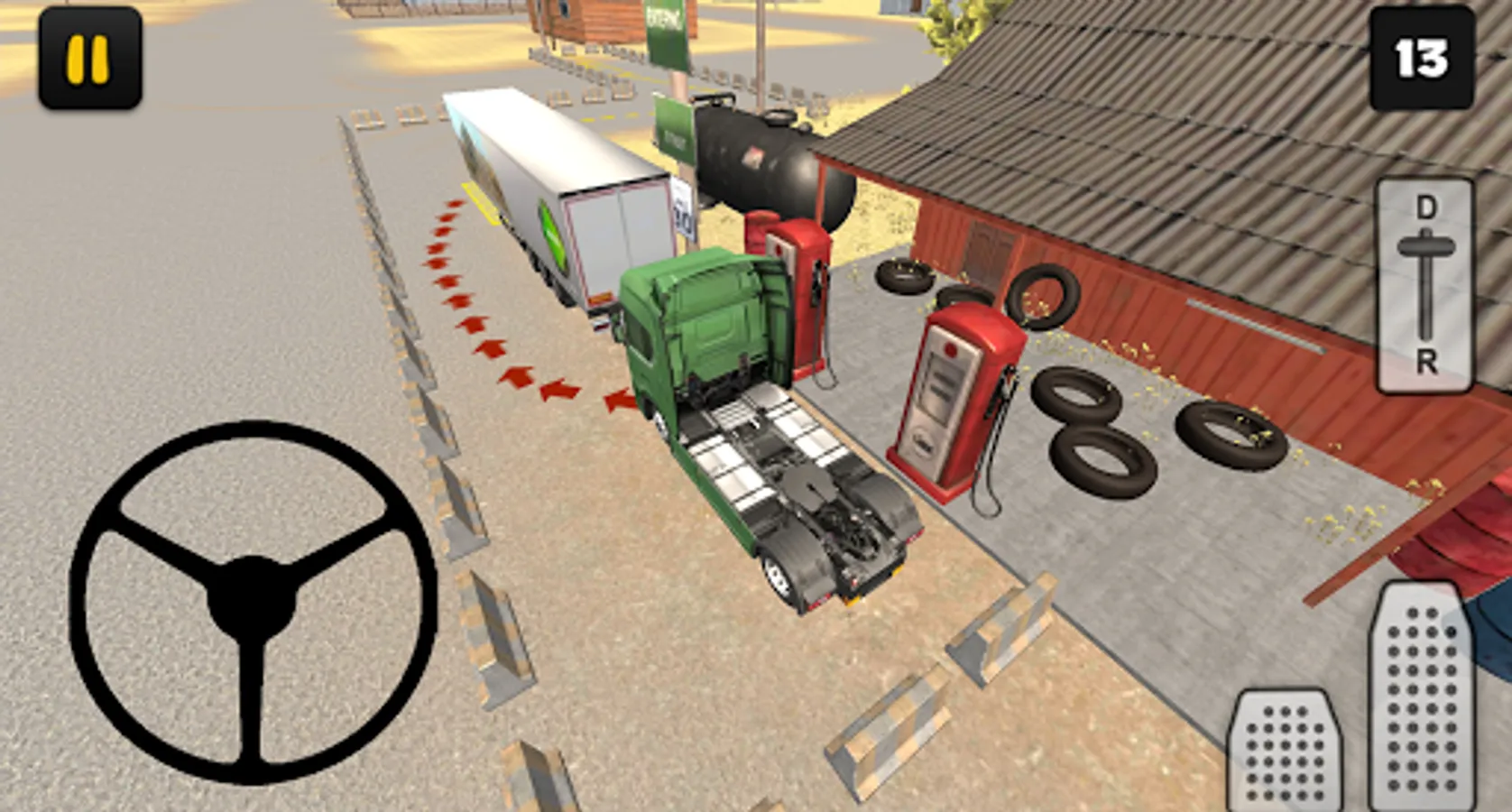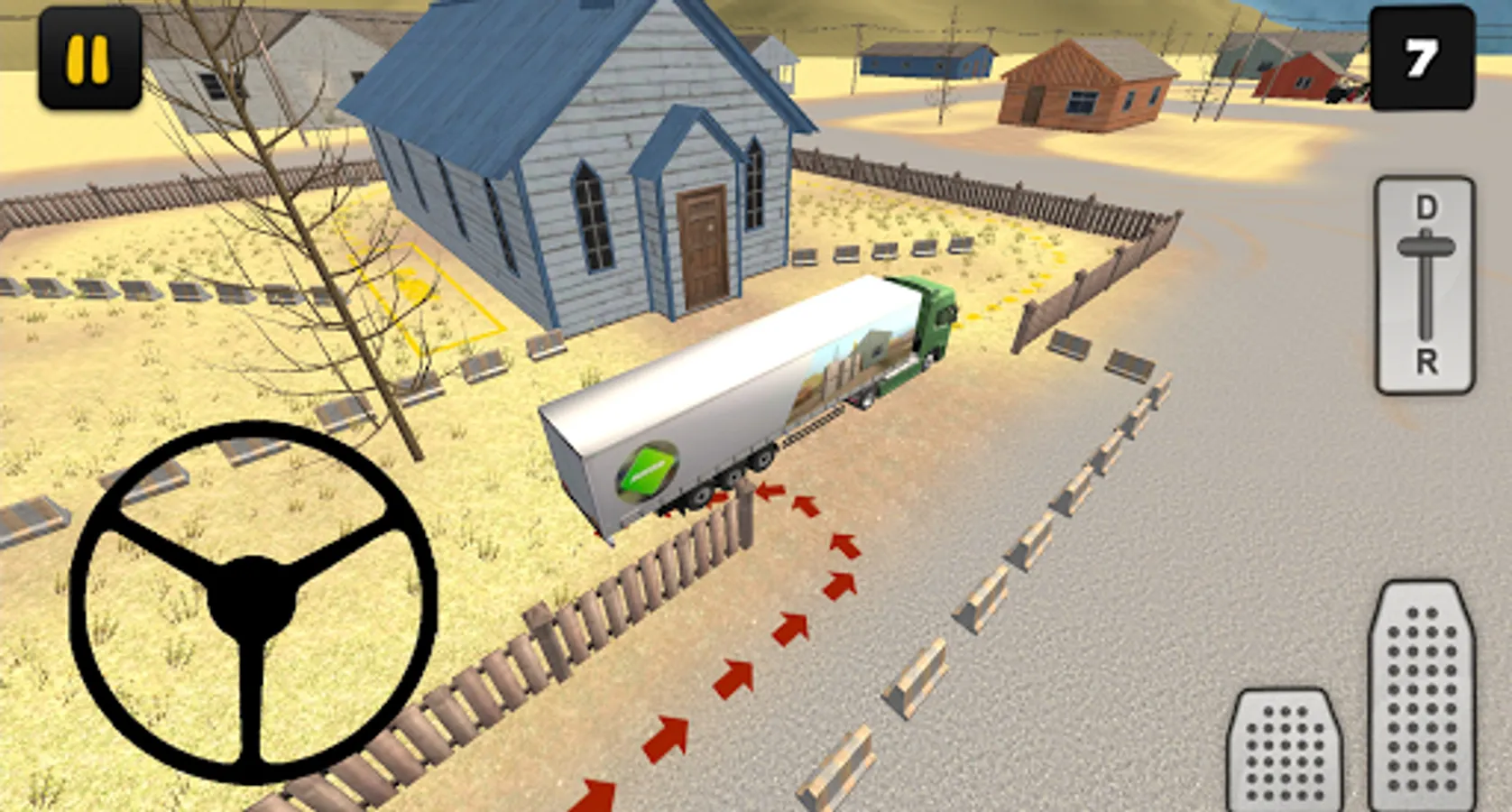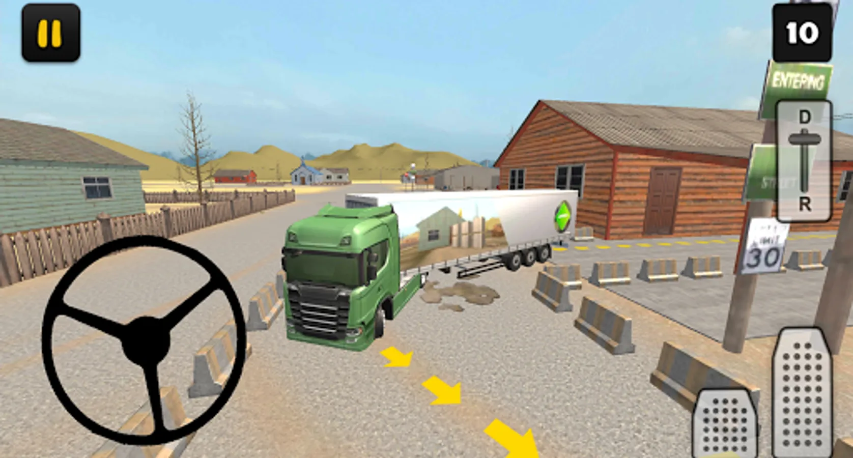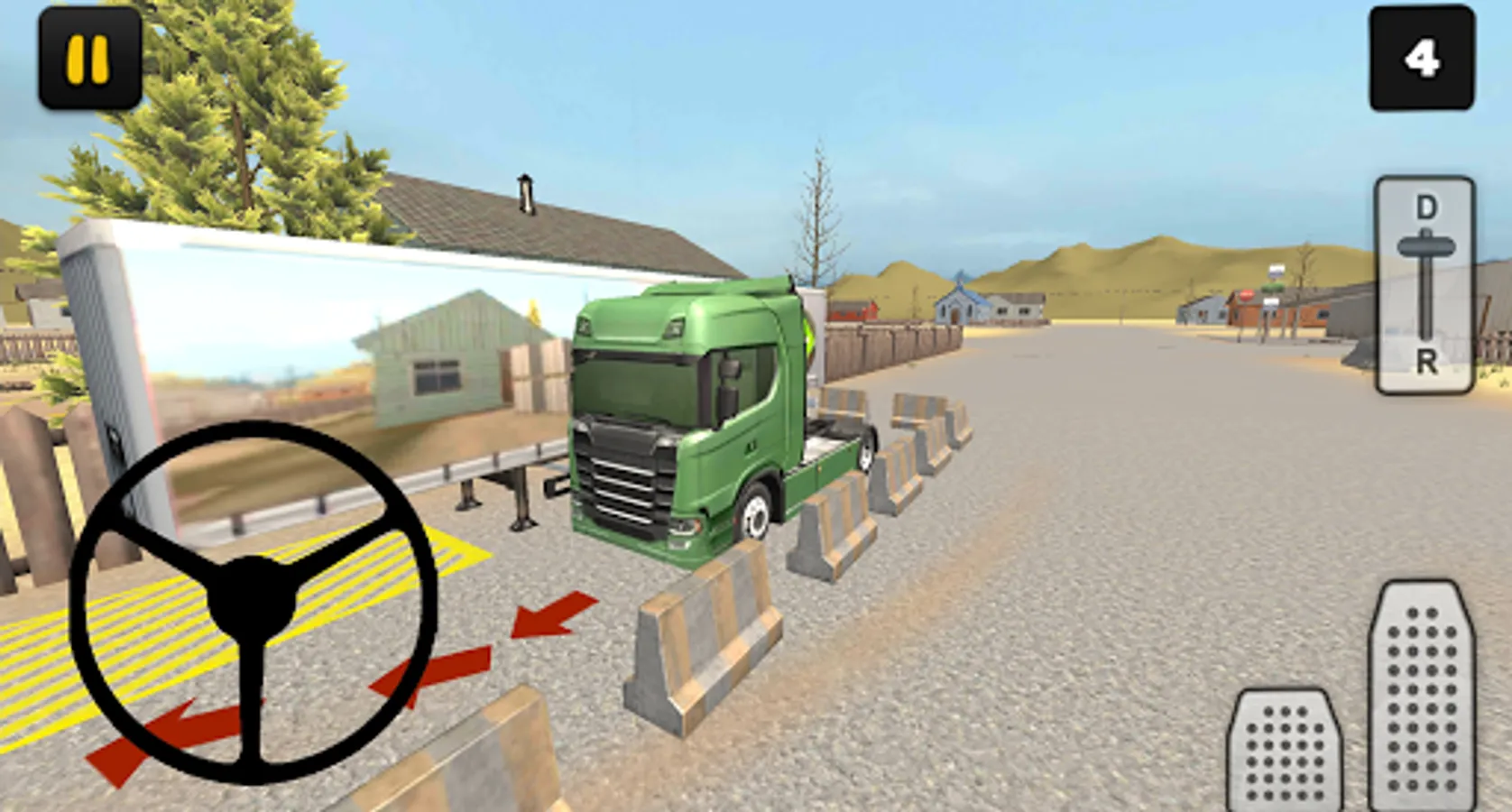 In this City Delivery edition of Truck Simulator 3D you’ll learn how to drive with a big truck and trailer in a city. Driving with a truck and trailer in a city is not easy, you have to make turns in small spaces for example. In 18 levels you’ll face realistic situations where you have to park your truck and trailer, you have to drive reverse near a garage for example. To finish a level you first have to attach the trailer, to do that follow the red arrow. After you’ve attached the trailer, you have to park your truck and trailer, to do that follow the yellow arrows.