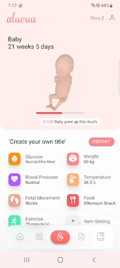 - Healthcare Support Items: Blood Pressure/Glucose, Body Weight, Body Temperature, Fetal Movement, Labor Pain, Food, Exercise, Menstruation