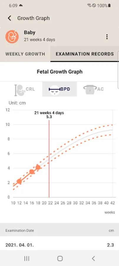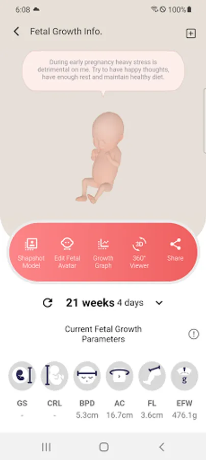 - Fetal growth information: fetus 3D models (4~40 weeks) and fetal growth graph provided