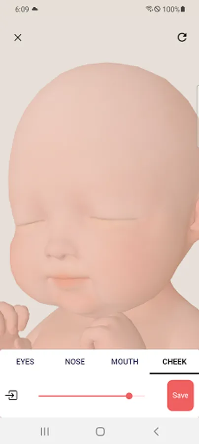 - Fetal 3D avatar model editing / recommendation: You can modify the fetal model after 17 weeks. When you register the fetus information, if you register an ultrasound image with a good fetal face by 3D ultrasound device in hospital, it will recommend and reflect the appearance. The input image is not necessary unless you are using recommendation.
