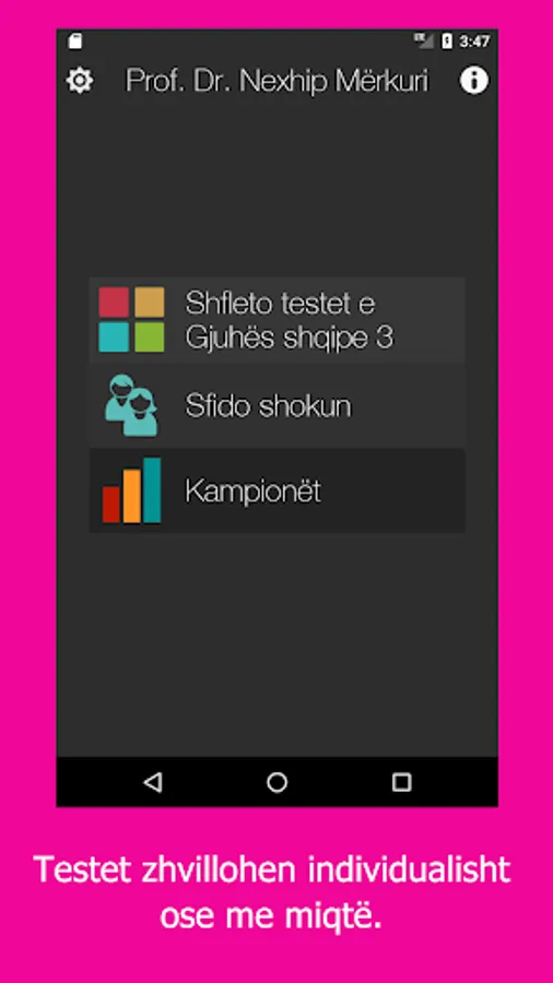 Aplikacion për klasat e treta të shkollës 9-vjeçare, përbërë nga teste: pyetje me disa përgjigje, pyetje me përgjigje të shumëfishtë, në formë quiz-i për çdo temë mësimore. I vlefshëm për nxënësit, mësuesit e prindërit në Shqipëri, Kosovë, Maqedoni, Mali i Zi e diasporë. Sipas programit të miratuar nga Ministria e Arsimit.