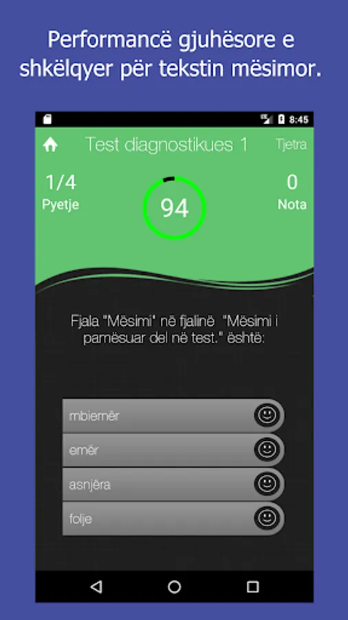 Testet e këtij aplikacioni janë shkallë të sigurta, për fletët e reja të vlerësimit të kompetencave në situata të ngjashme për rritjen e njohurive të qëndrueshme. Duke përmirësuar të nxënit afatgjatë nxënësi ecën, ngjitet pa stres tek testet që zhvillohen pas 25-30 orëve, 3-mujore, tek ato semestrale e përfundimtare për të gjithë lëndën e Gjuhës shqipe 3, të realizuara nga çfarëdo niveli kontrollues.