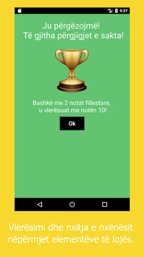 Aplikacion për klasat e dyta të shkollës 9-vjeçare, përbërë nga teste: pyetje me disa përgjigje, pyetje me përgjigje të shumëfishtë, në formë quiz-i për çdo temë mësimore. I vlefshëm për nxënësit, mësuesit e prindërit në Shqipëri, Kosovë, Maqedoni, Mali i Zi e diasporë. Sipas programit të miratuar nga Ministria e Arsimit.