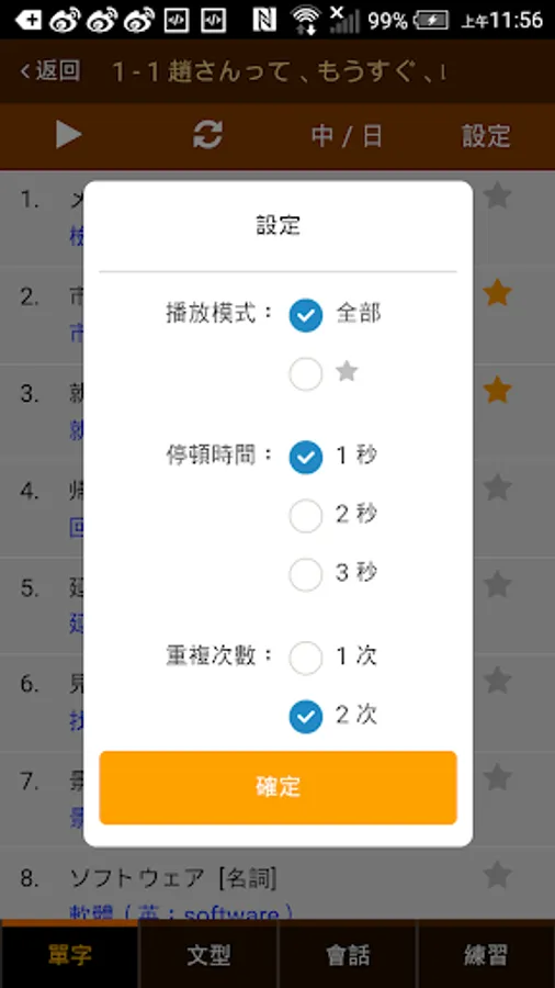全部真人發音, 能設定次數和循環播放模式,隨時隨地訓練聽力。