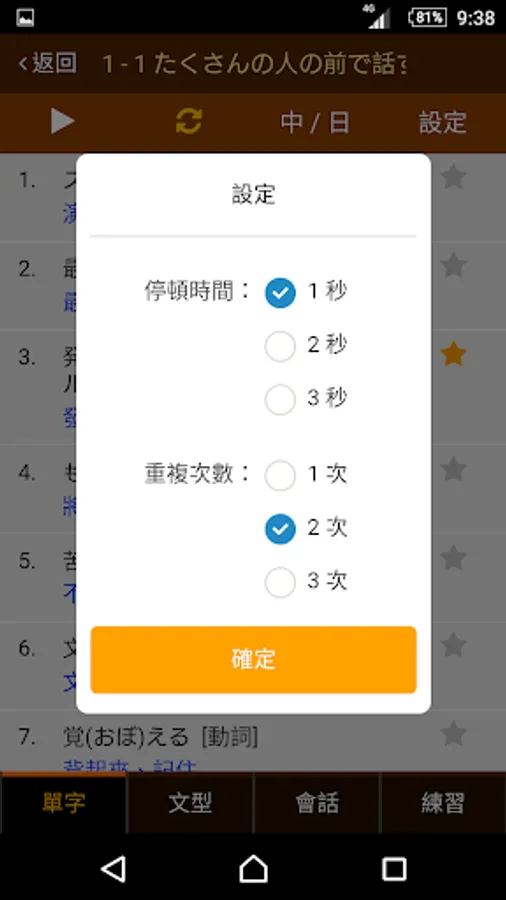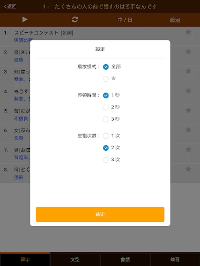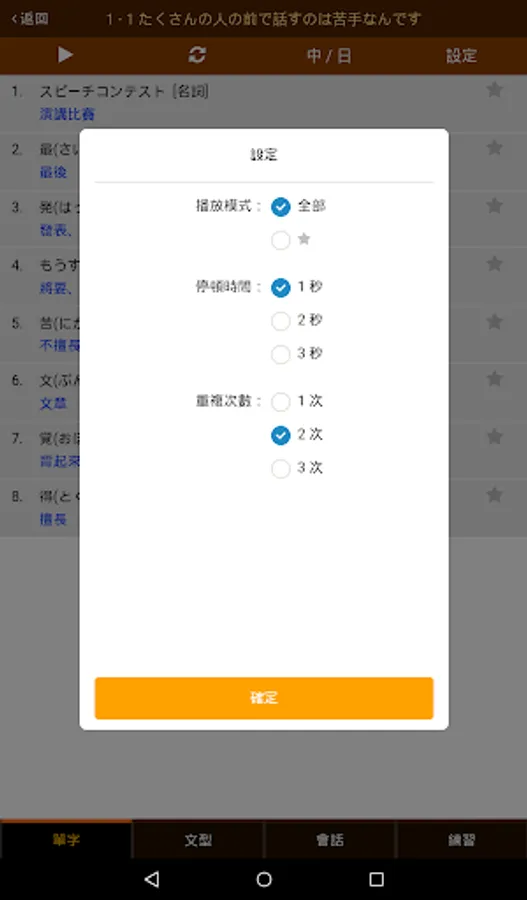 全部真人發音, 能設定次數和循環播放模式,隨時隨地訓練聽力。