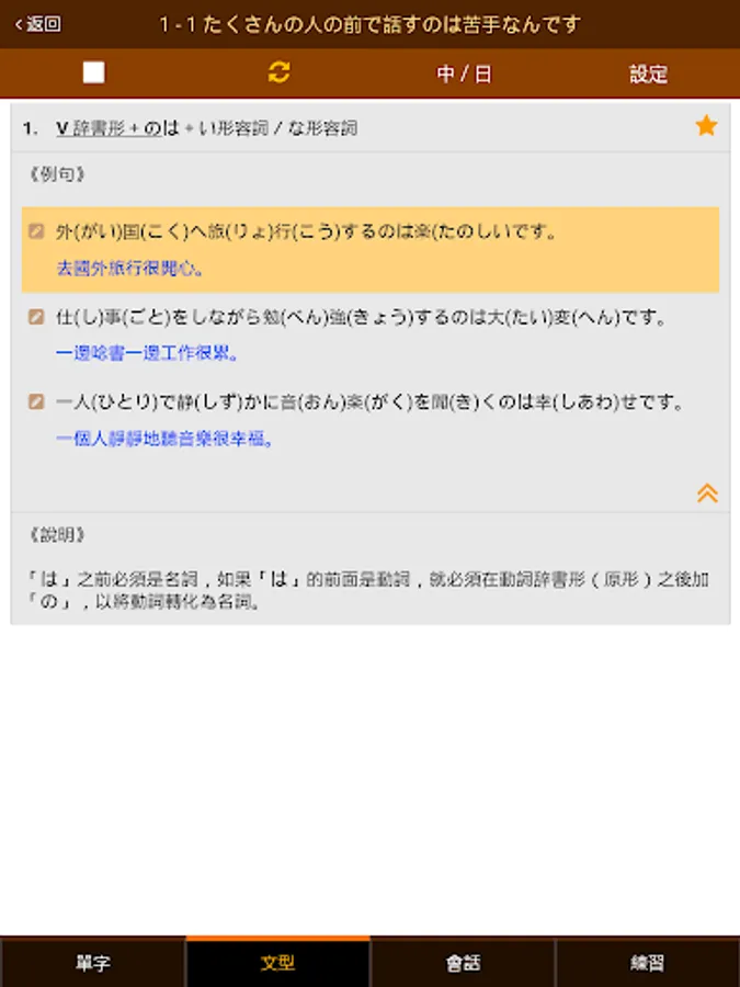 能隨時收錄個人單字和文型,讓您可以快速複習。