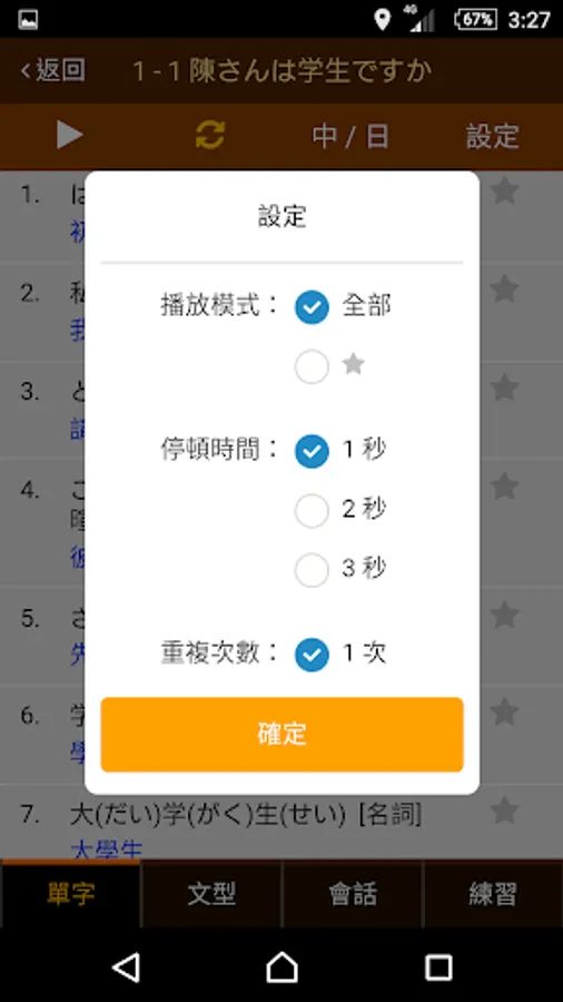 - 全部真人發音, 能設定次數和循環播放模式,隨時隨地訓練聽力。