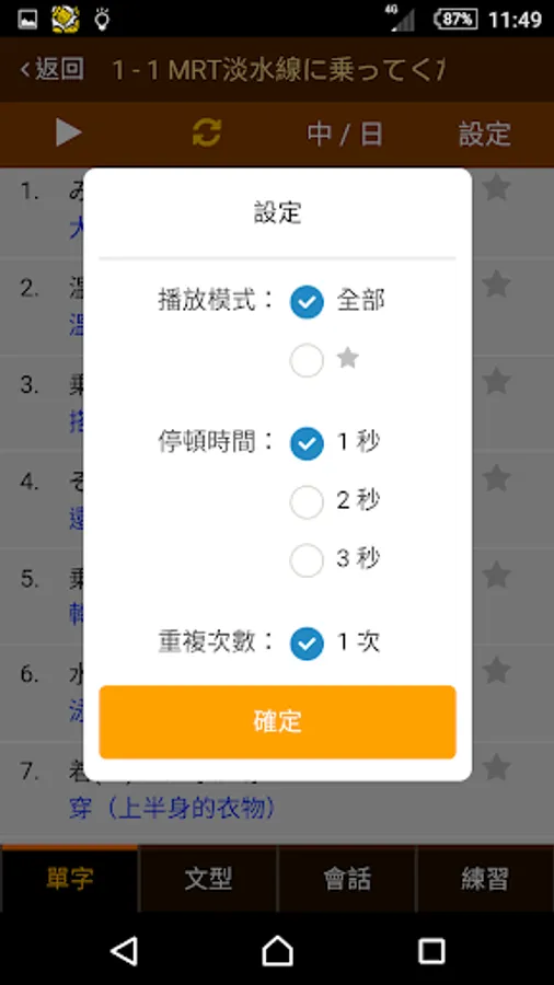 全部真人發音, 能設定次數和循環播放模式,隨時隨地訓練聽力。
