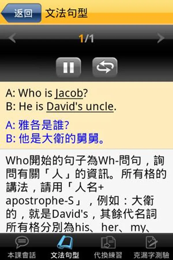 由會話中選錄實用句型,由專業老師解說文法與句型用法,搭配互動式練習與測驗(代換練習與克漏字測驗),讓您精熟重點文法與句型。