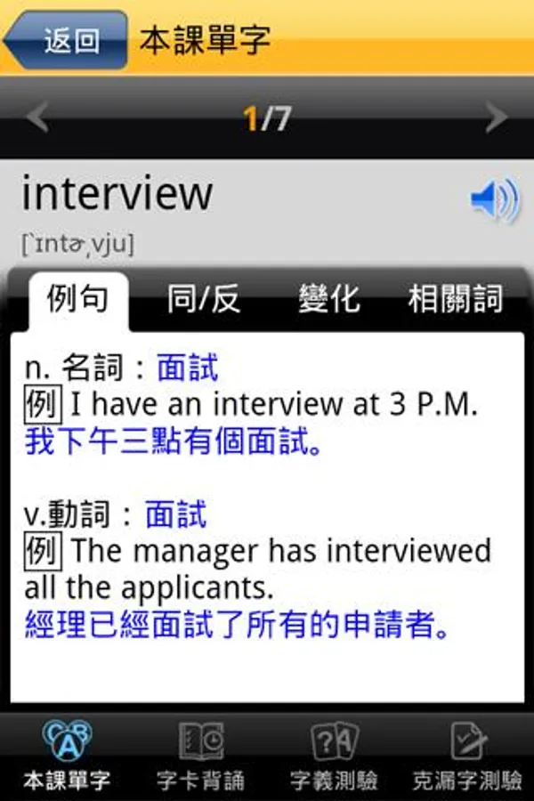 主題式單字搭配例句與多種互動式練習與測驗(字卡背誦、字義測驗、克漏字測驗),幫助您連接單字的形、音、義,有效記憶單字。
