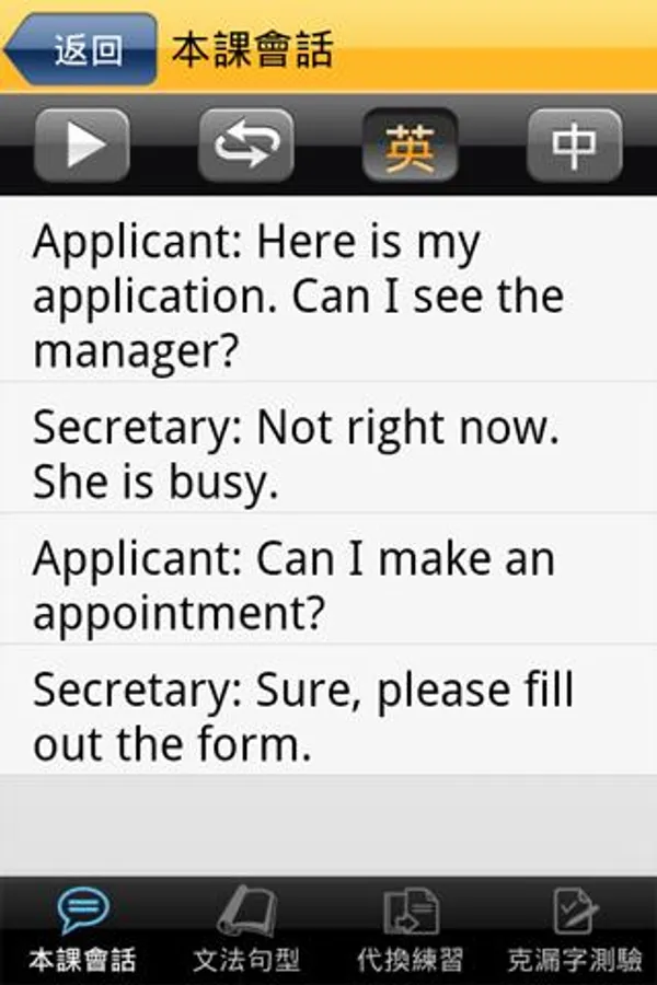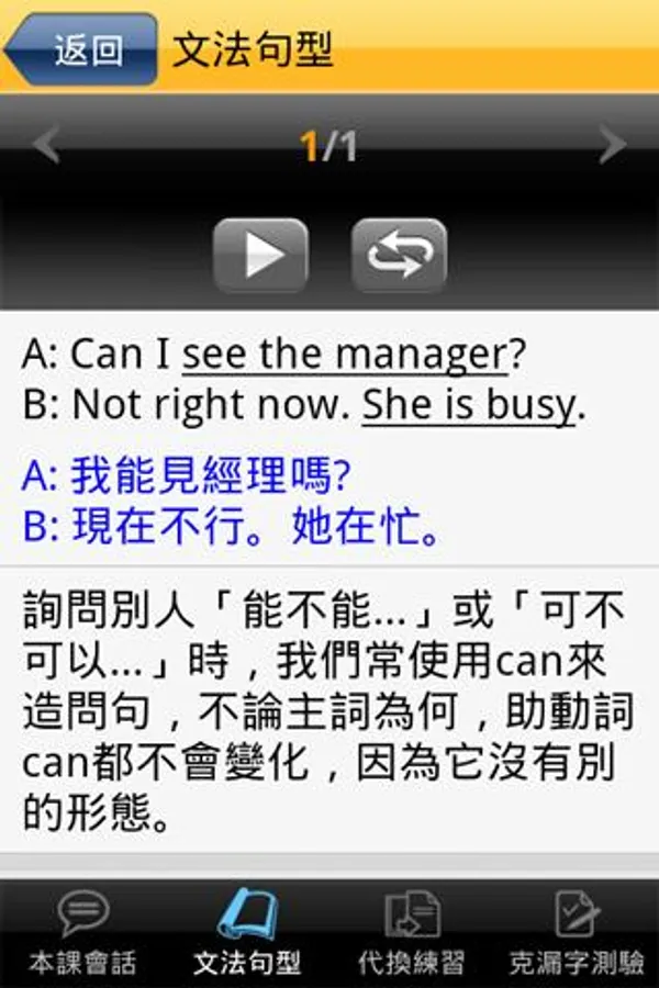 由會話中選錄實用句型,由專業老師解說文法與句型用法,搭配互動式練習與測驗(代換練習與克漏字測驗),讓您精熟重點文法與句型。