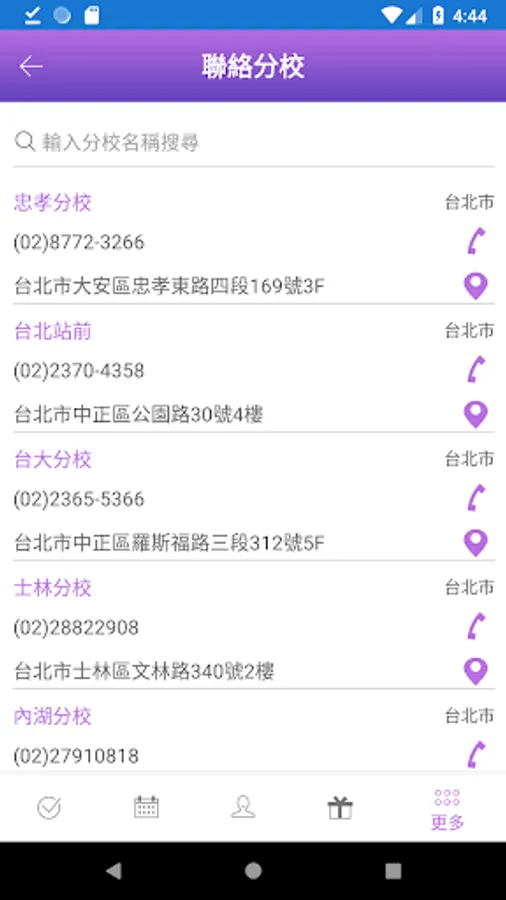 7. 聯絡分校:關鍵字快速搜尋分校,撥打電話一點通