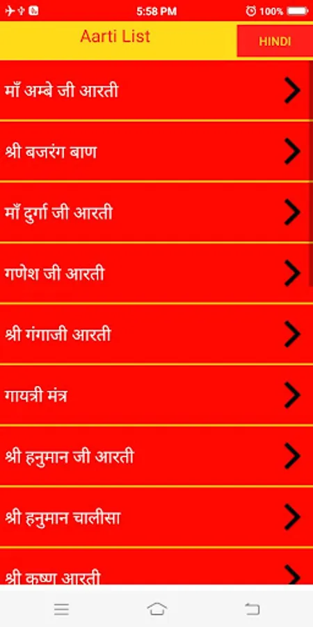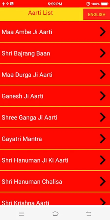 # You can switch between Hindi and English wording of the prayers or Aartis.