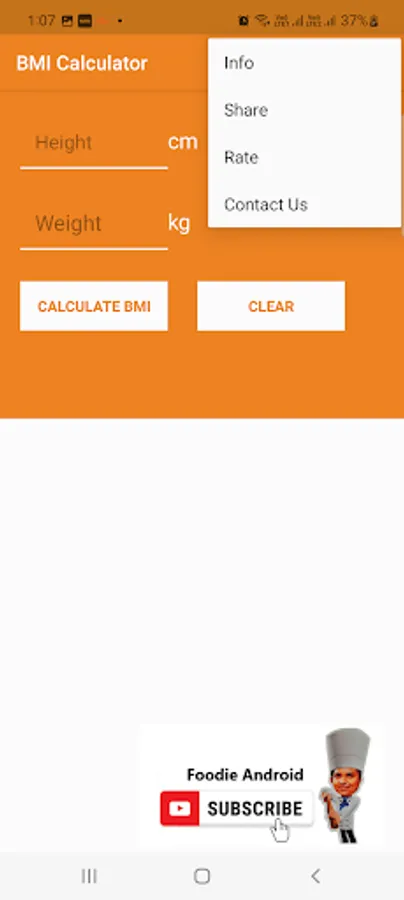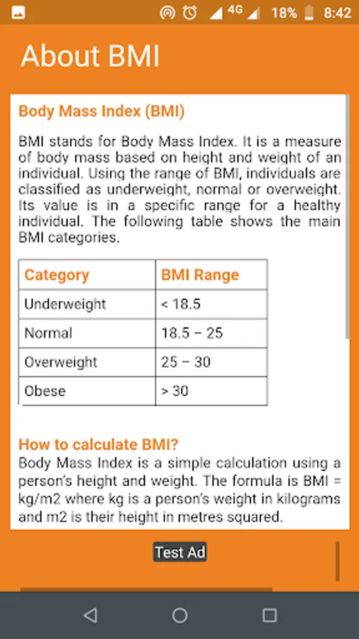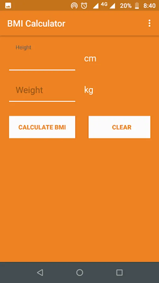 Objective of this app is to calculate Body Mass Index i.e. BMI using a person’s height and weight and check if a person is underweight, overweight or obese.