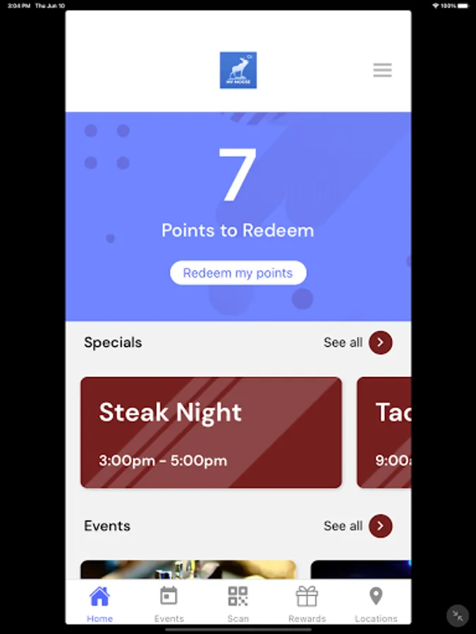 Get the most out of your membership by using the official My Moose app. Rewards are built right in, so you'll start earning points with every visit.